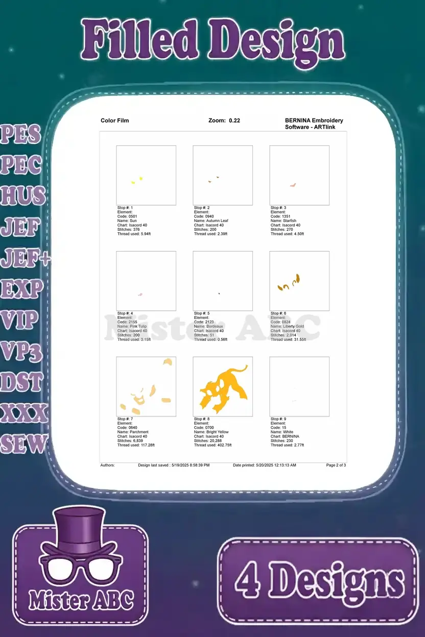 | Stitches | Colors | Thread Changes |