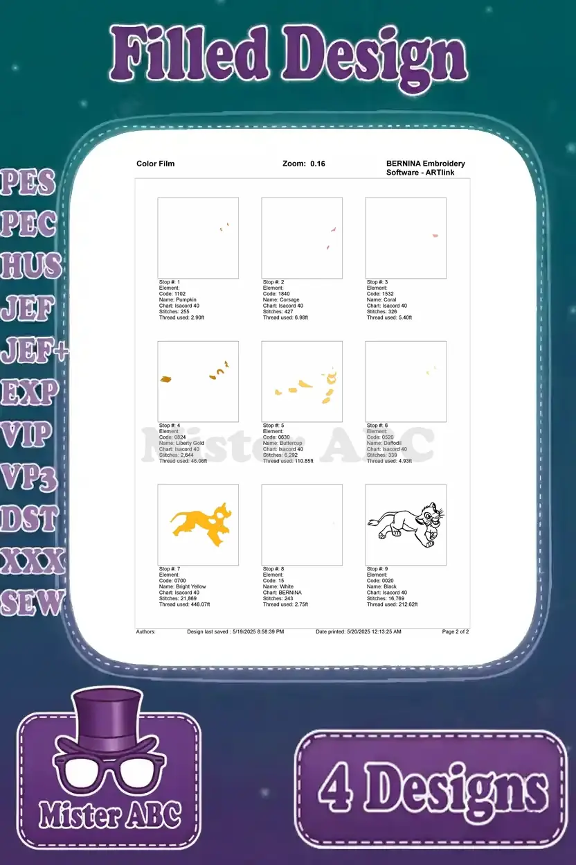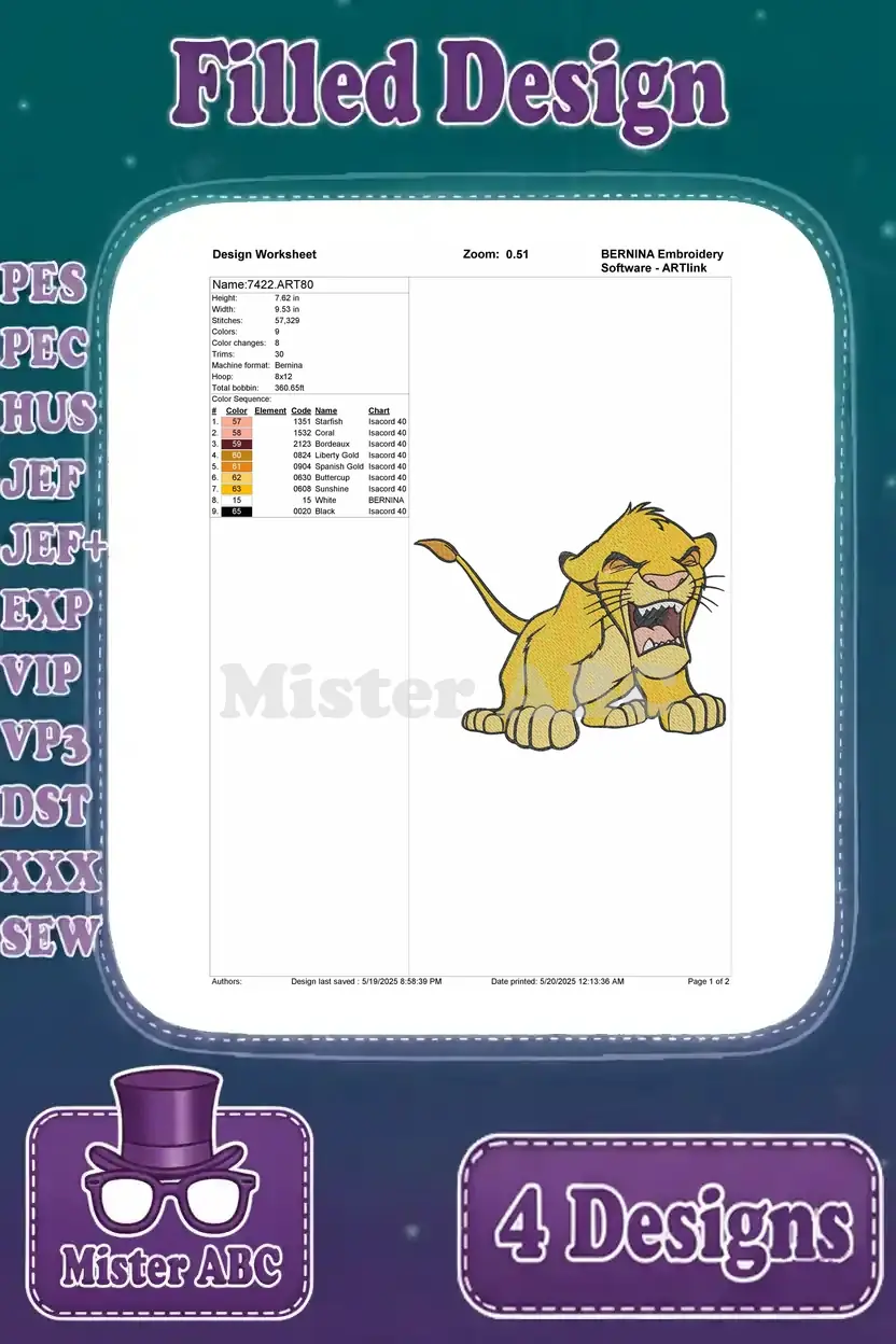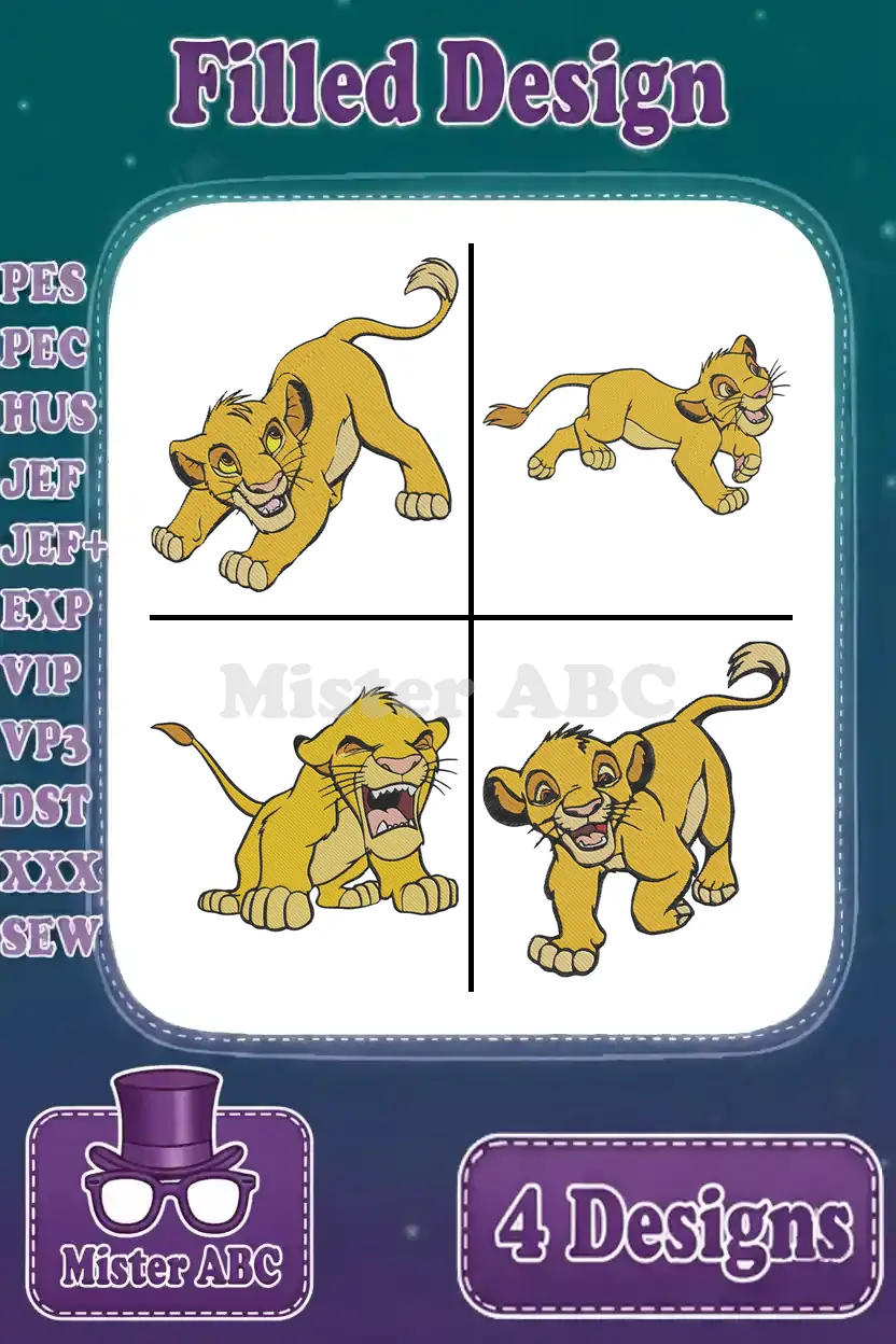 The Lion King Simba Cub Dynamic Pouncing Running Roaring And Playful Actions – Filled Embroidery Design