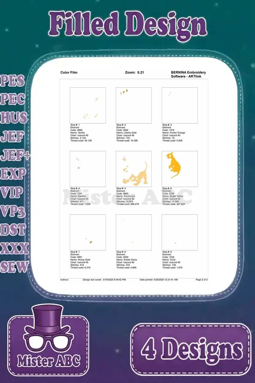 | Stitches | Colors | Thread Changes |