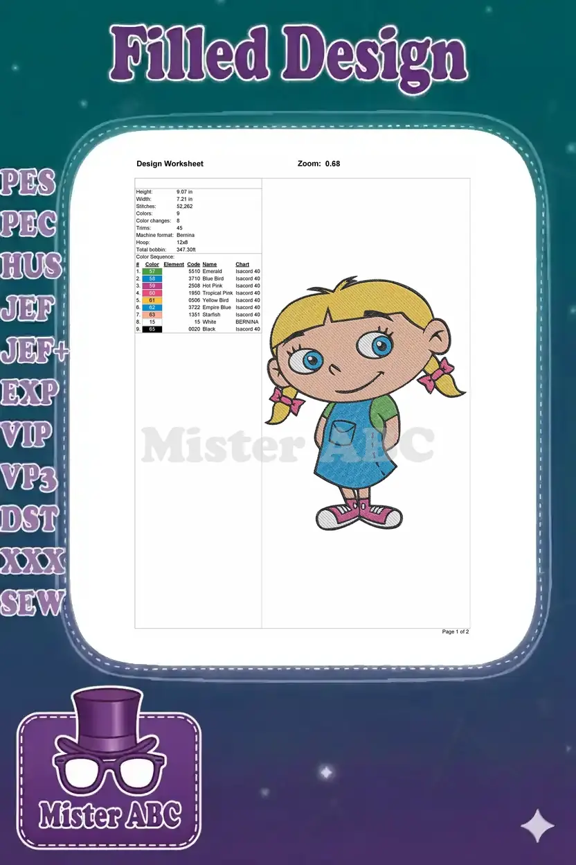 Little Einsteins Annie cartoon girl blonde pigtails embroidery designs