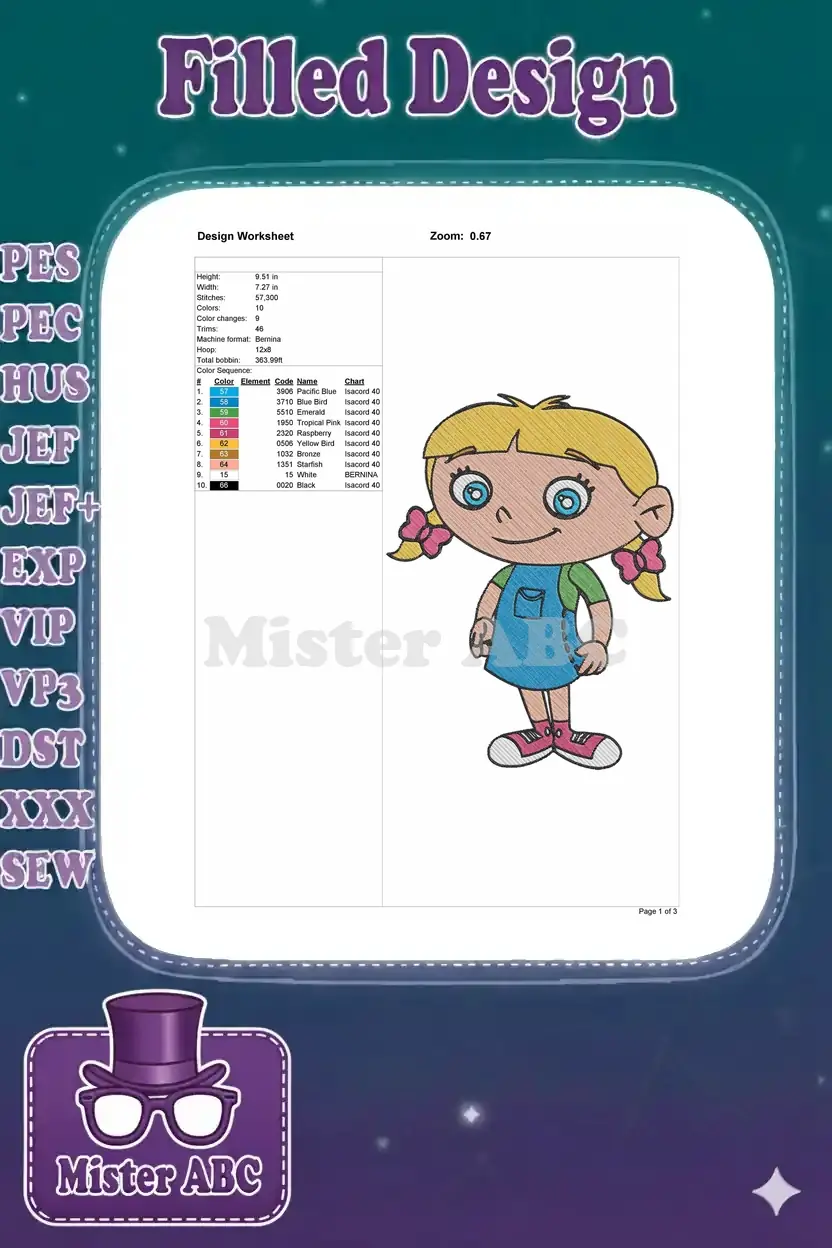 Little Einsteins Annie cartoon character embroidery designs