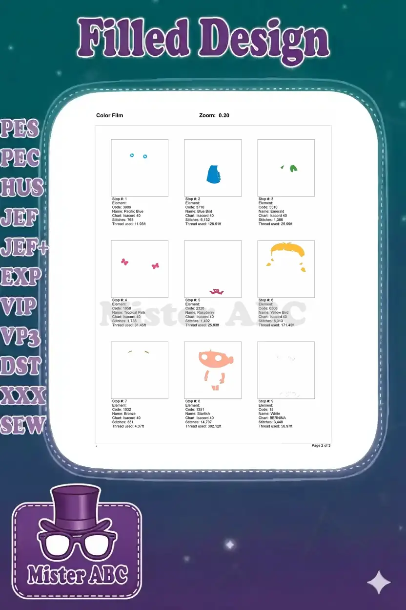| Stitches | Colors | Thread Changes |