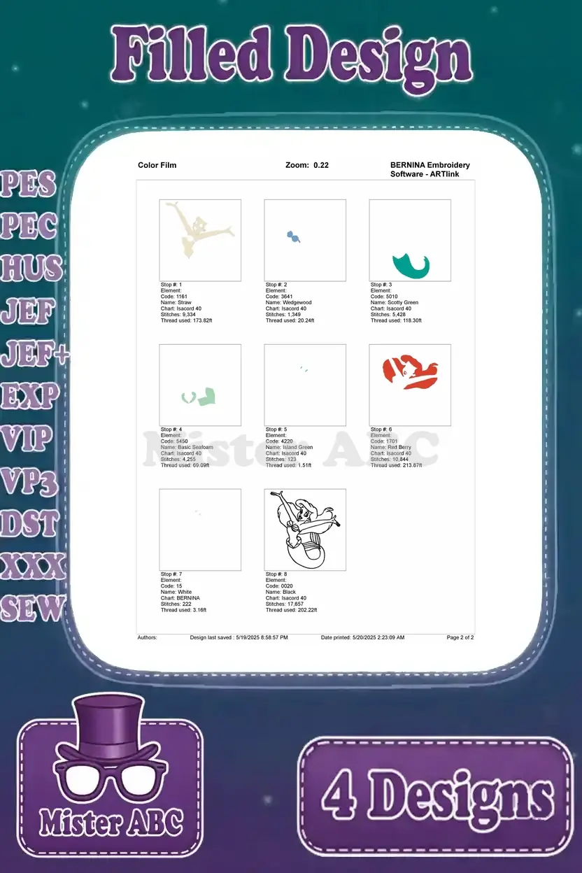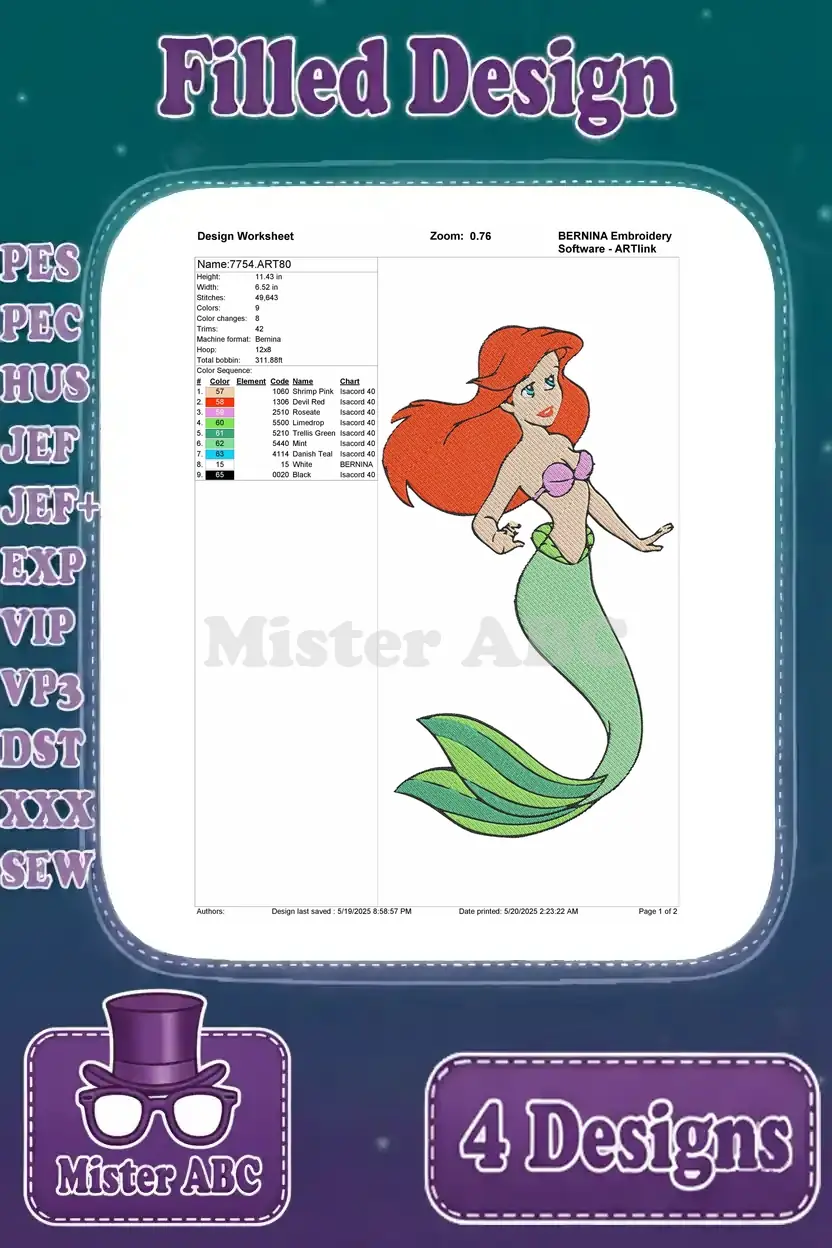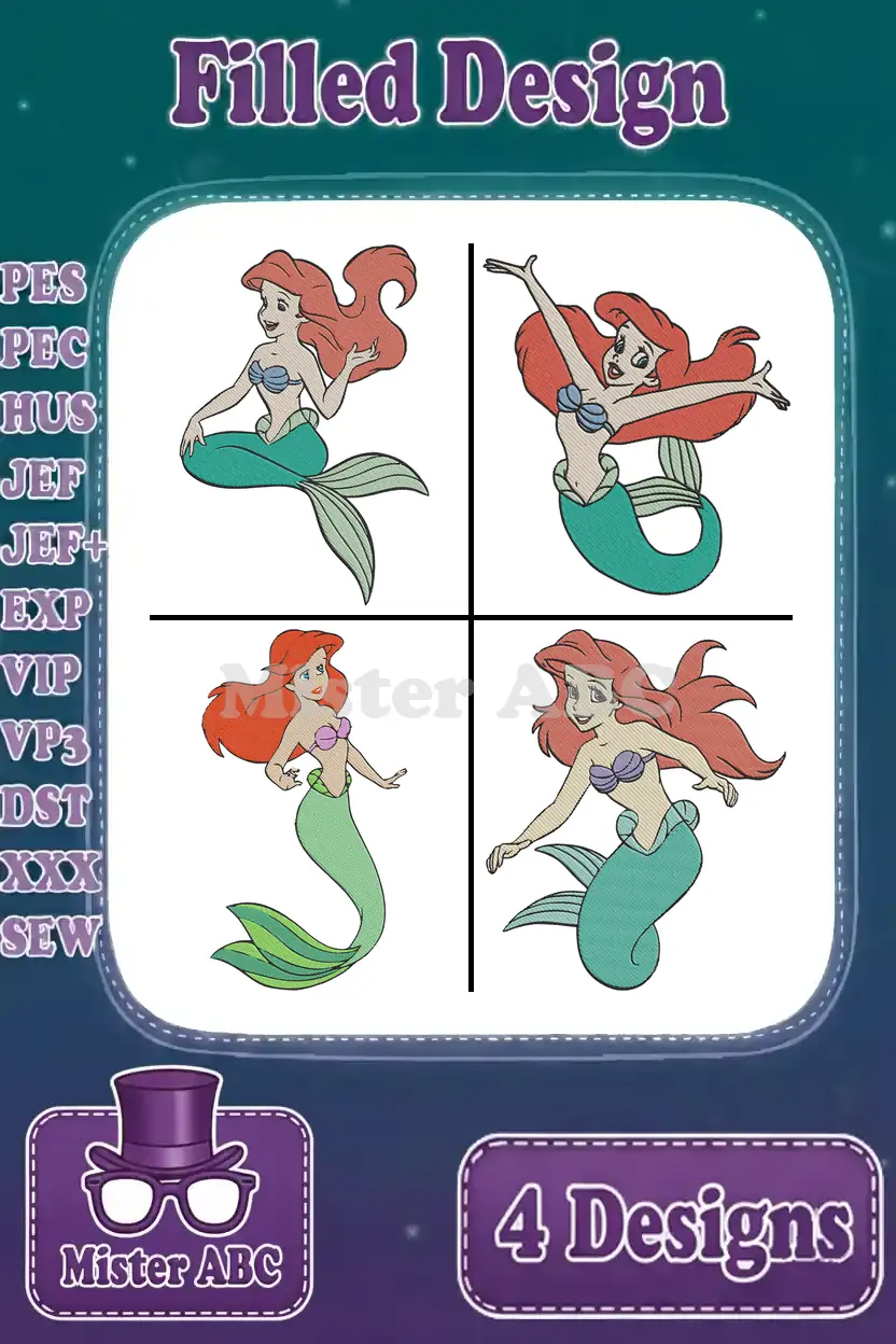The Little Mermaid Ariel Collection Of Dynamic Floating And Posing Mermaid – Filled Embroidery Design