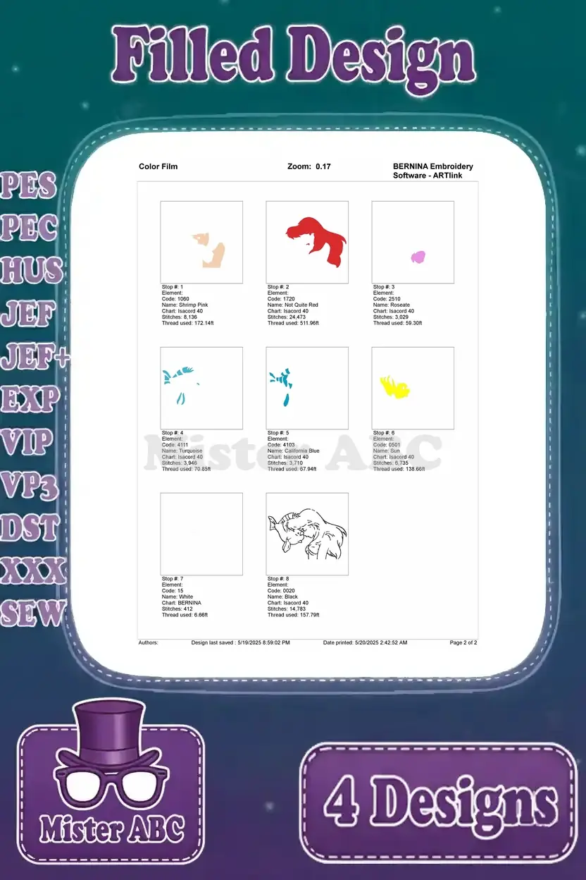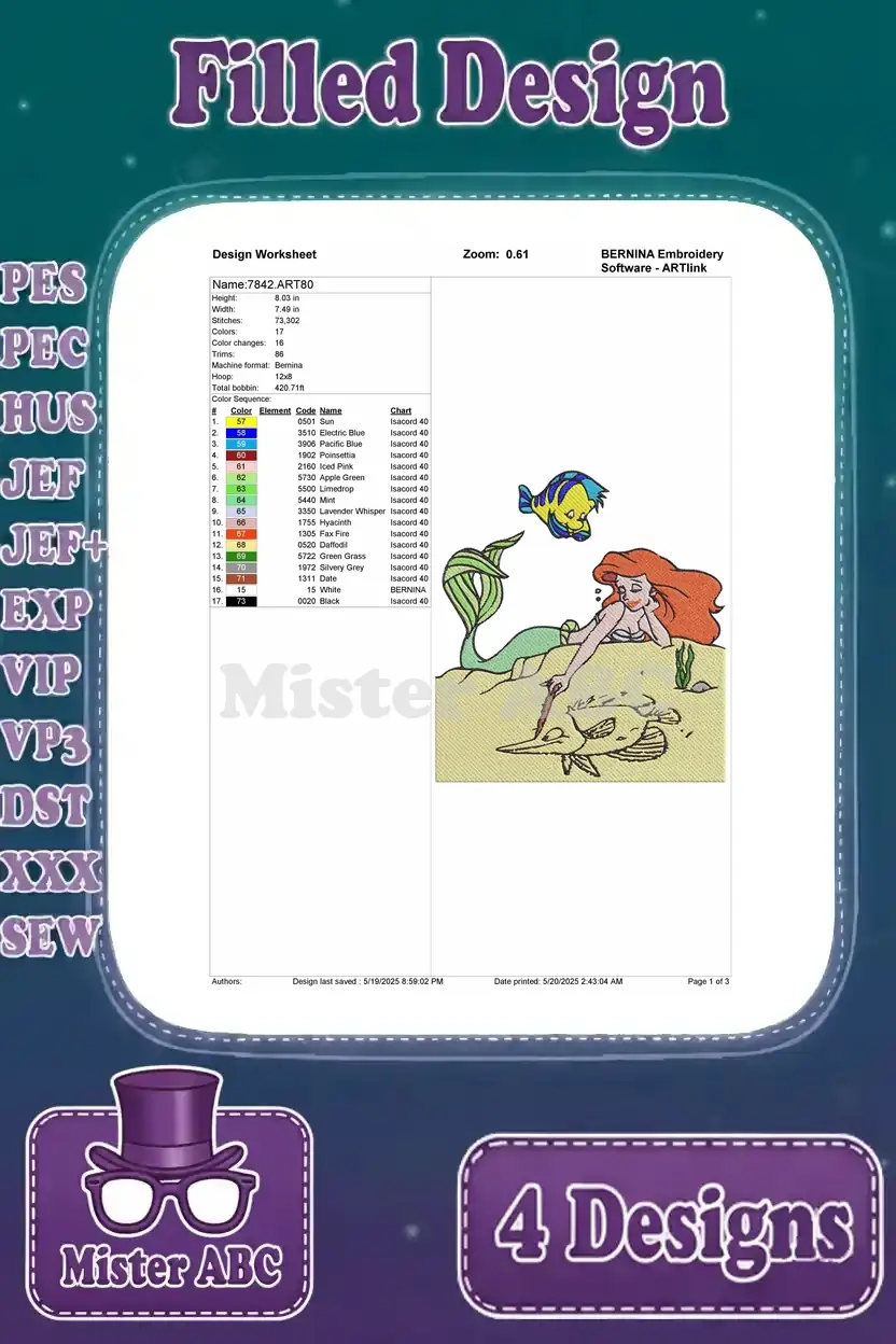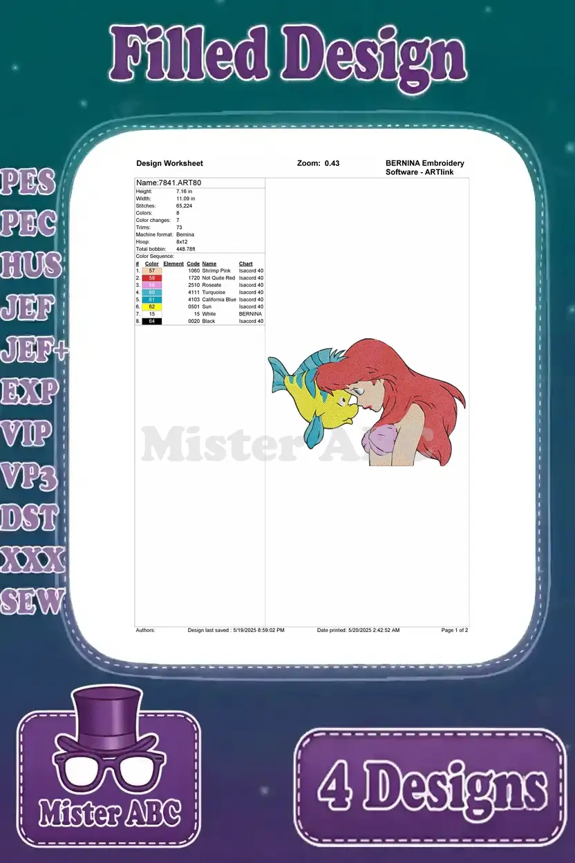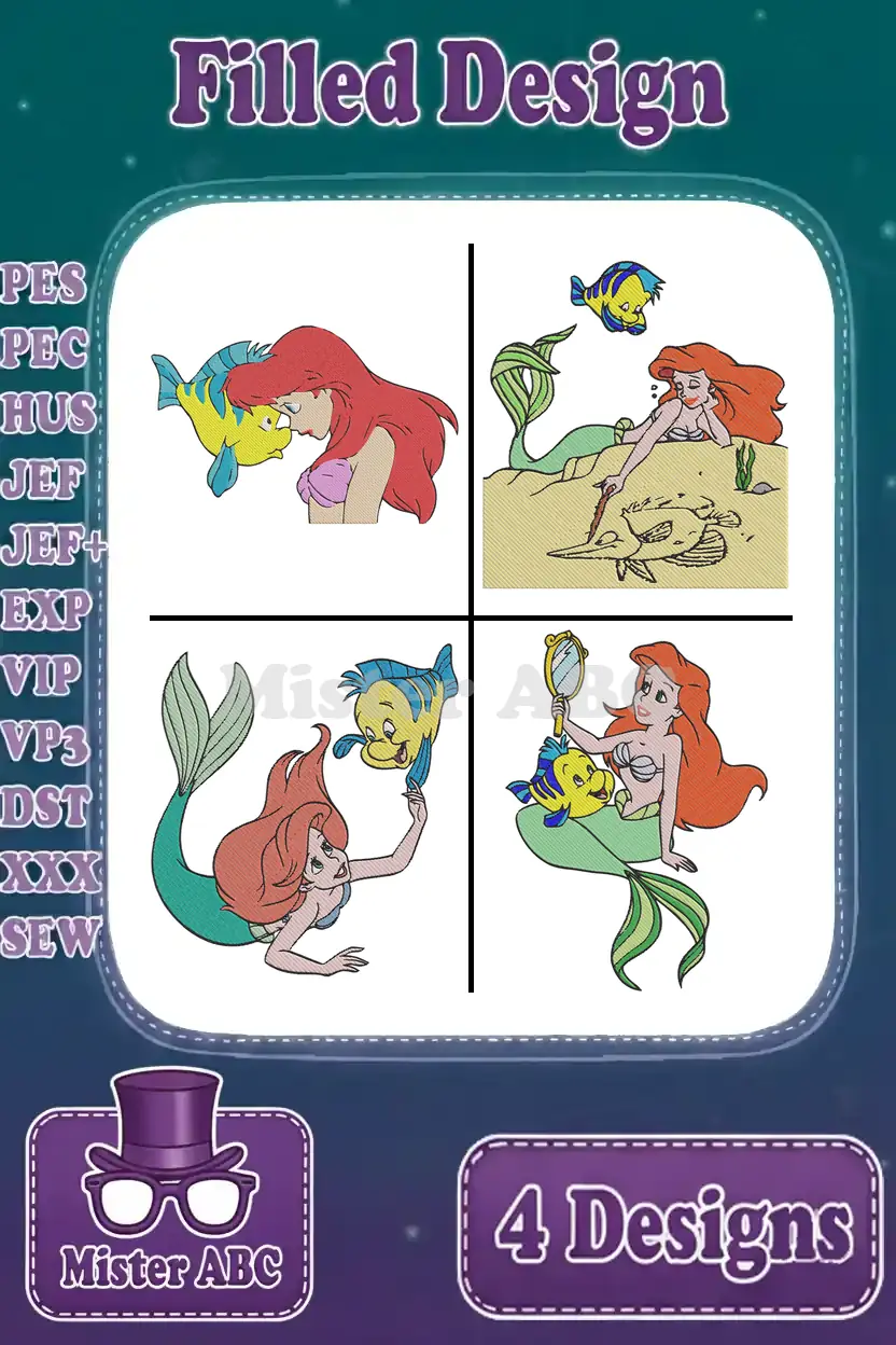 The Little Mermaid – Ariel And Flounder Best Friends – Using Dinglehopper And Underwater Play – Disney – Filled Embroidery Design