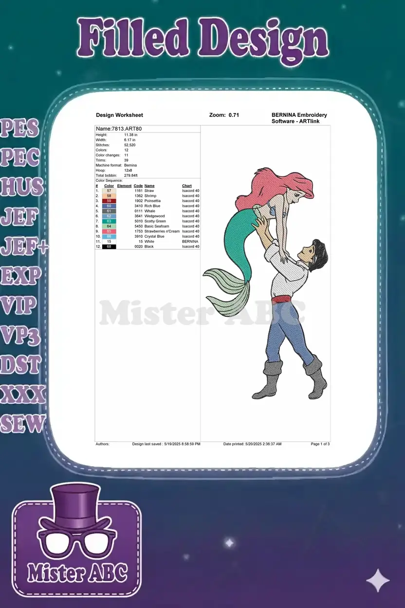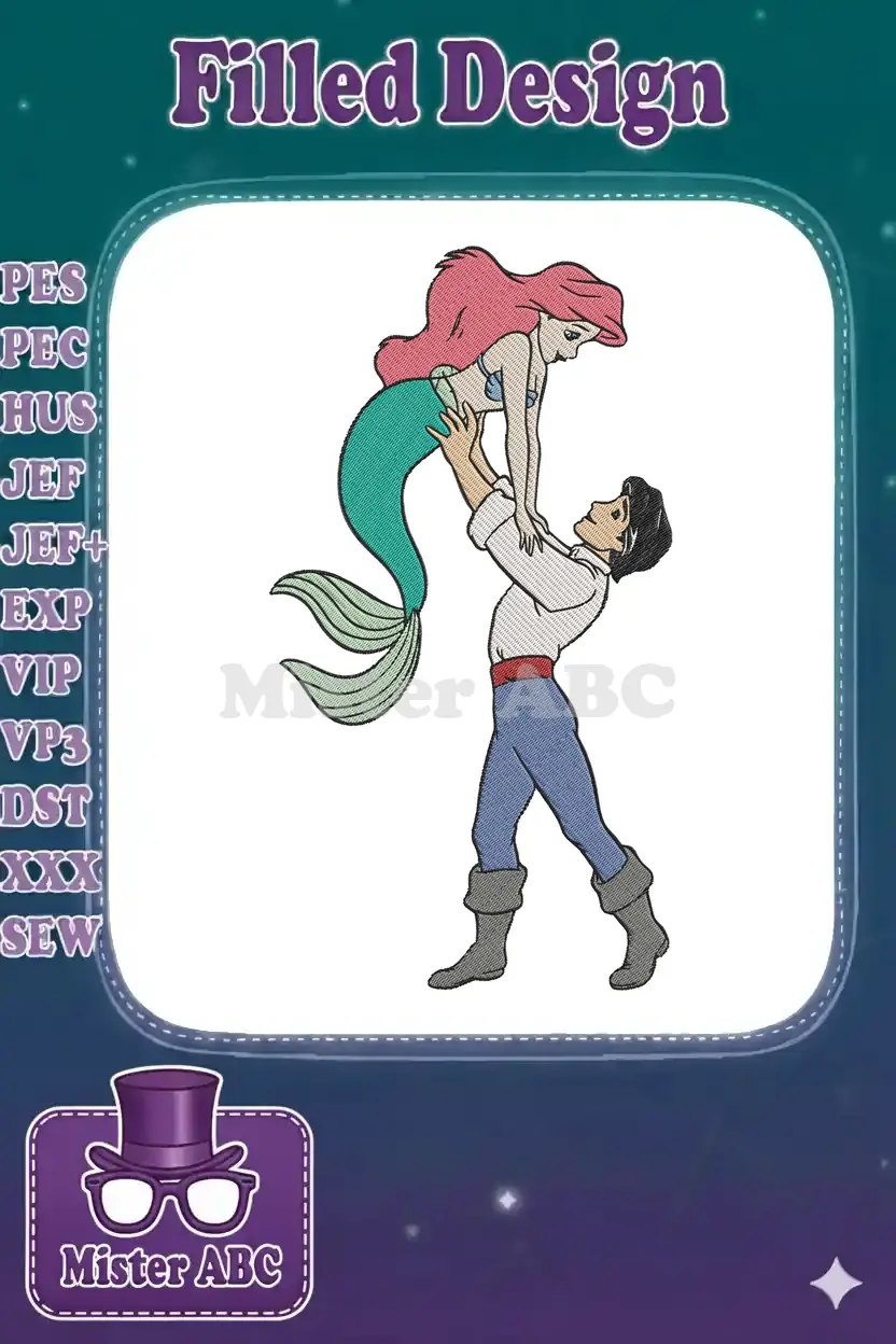 The Little Mermaid Ariel and Prince Eric romantic embroidery designs