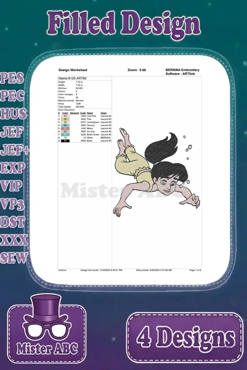 The Little Mermaid 2 Melody Ariels Daughter Various Human And Mermaid Poses – Filled Embroidery Design