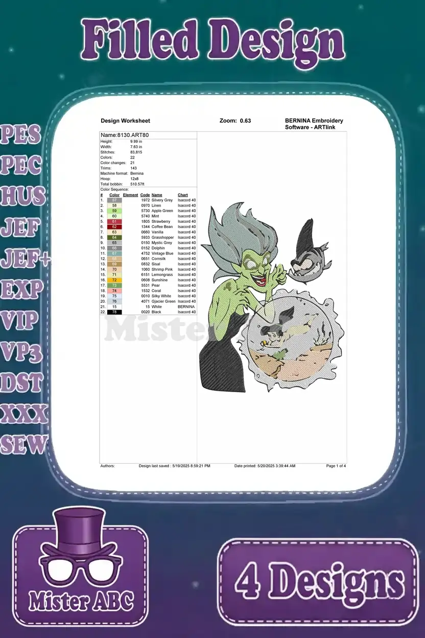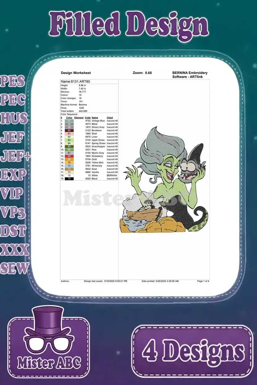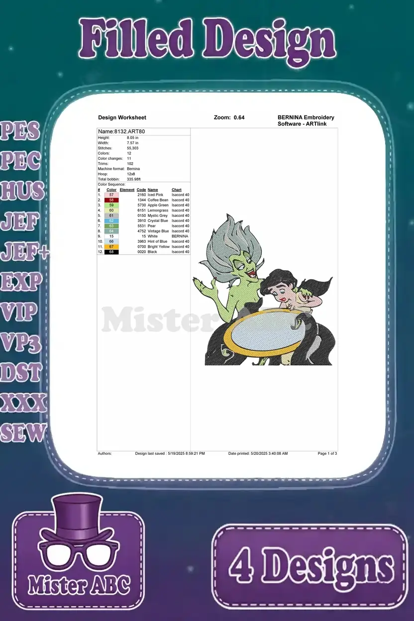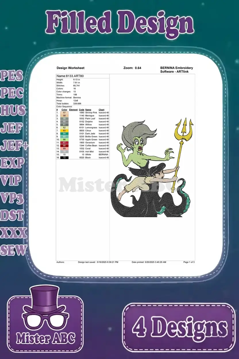 The Little Mermaid 2 Melody With Morgana Ursulas Sister Villainous Underwater – Filled Embroidery Design