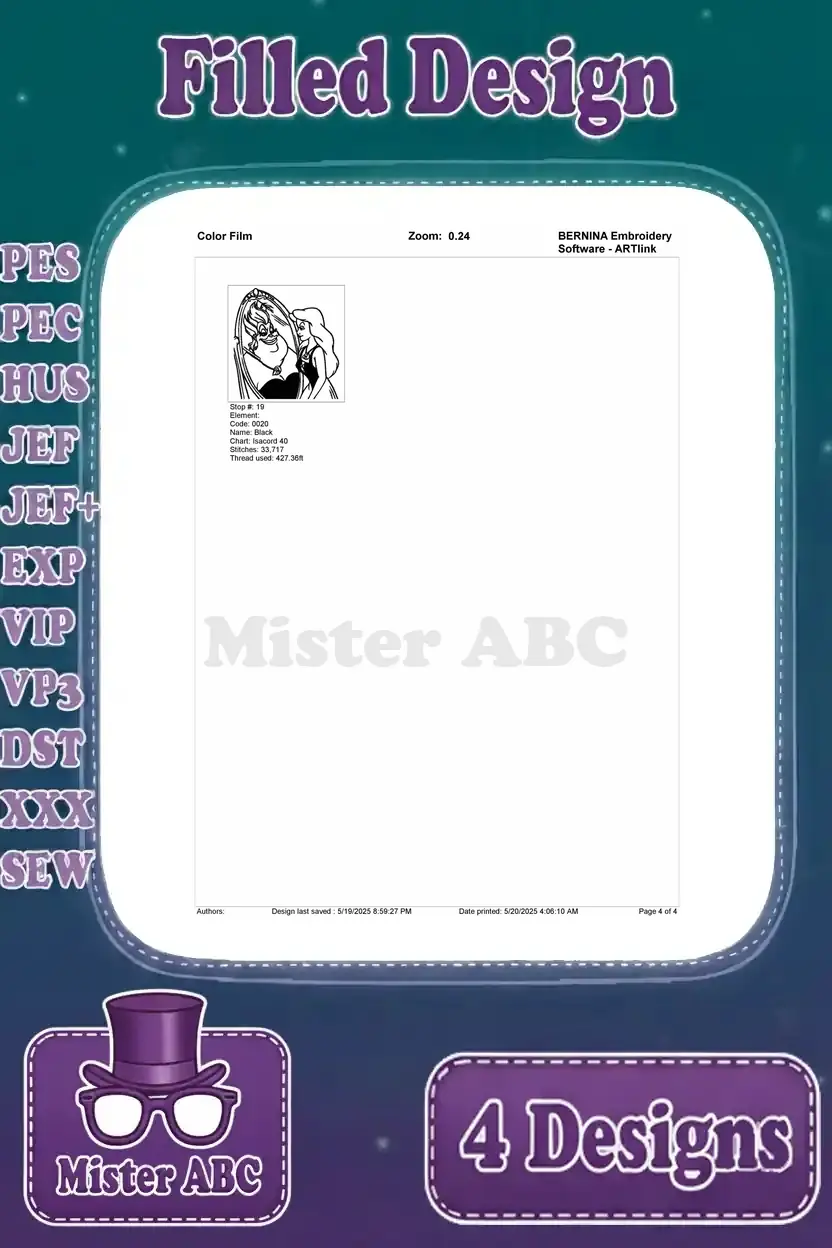 The Little Mermaid – Prince Eric And Vanessa Wedding – Ursula Mirror Reflection – Villain’S Scheme Revealed – Filled Embroidery Design