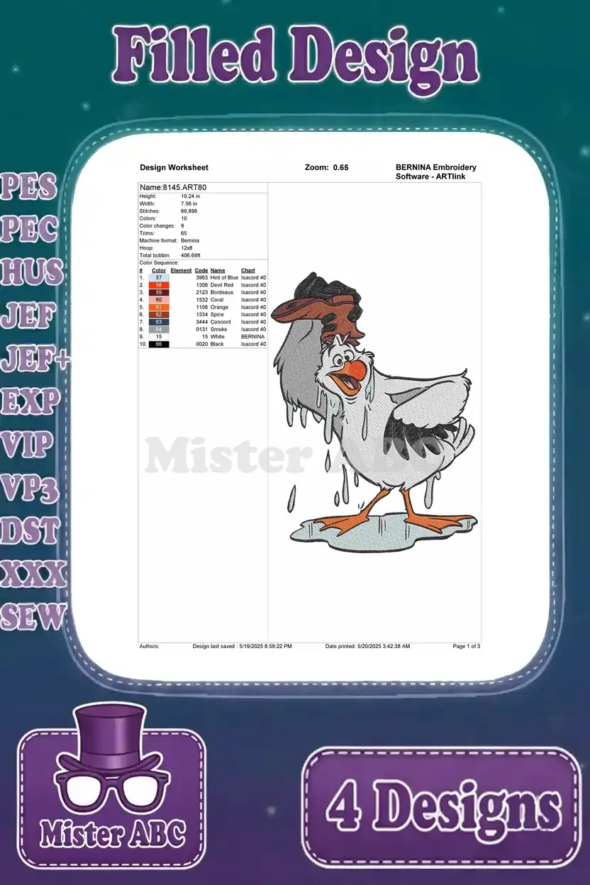 Dive into the whimsical world of Scuttle with this delightful 4-design embroidery bundle! Perfect for fans!