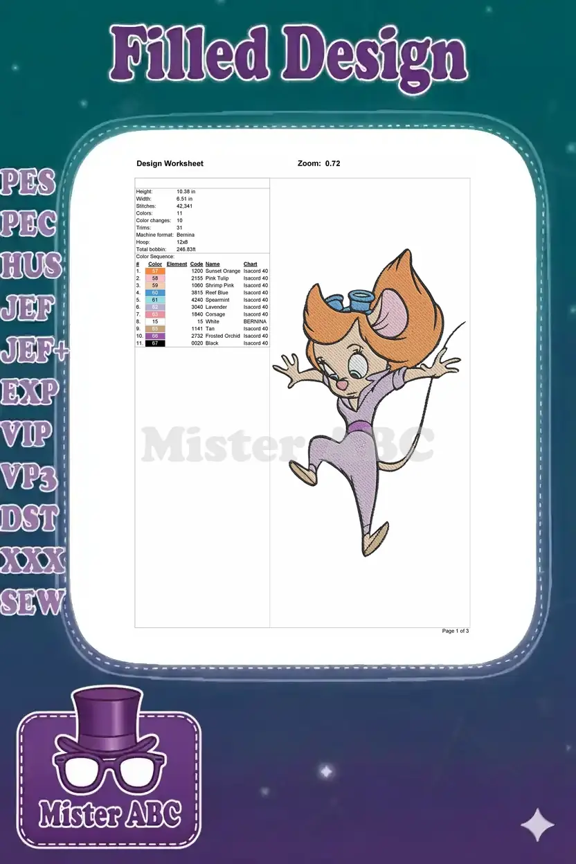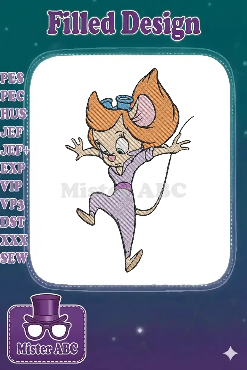 Lively orange-haired cartoon mouse girl dancing pose embroidery designs