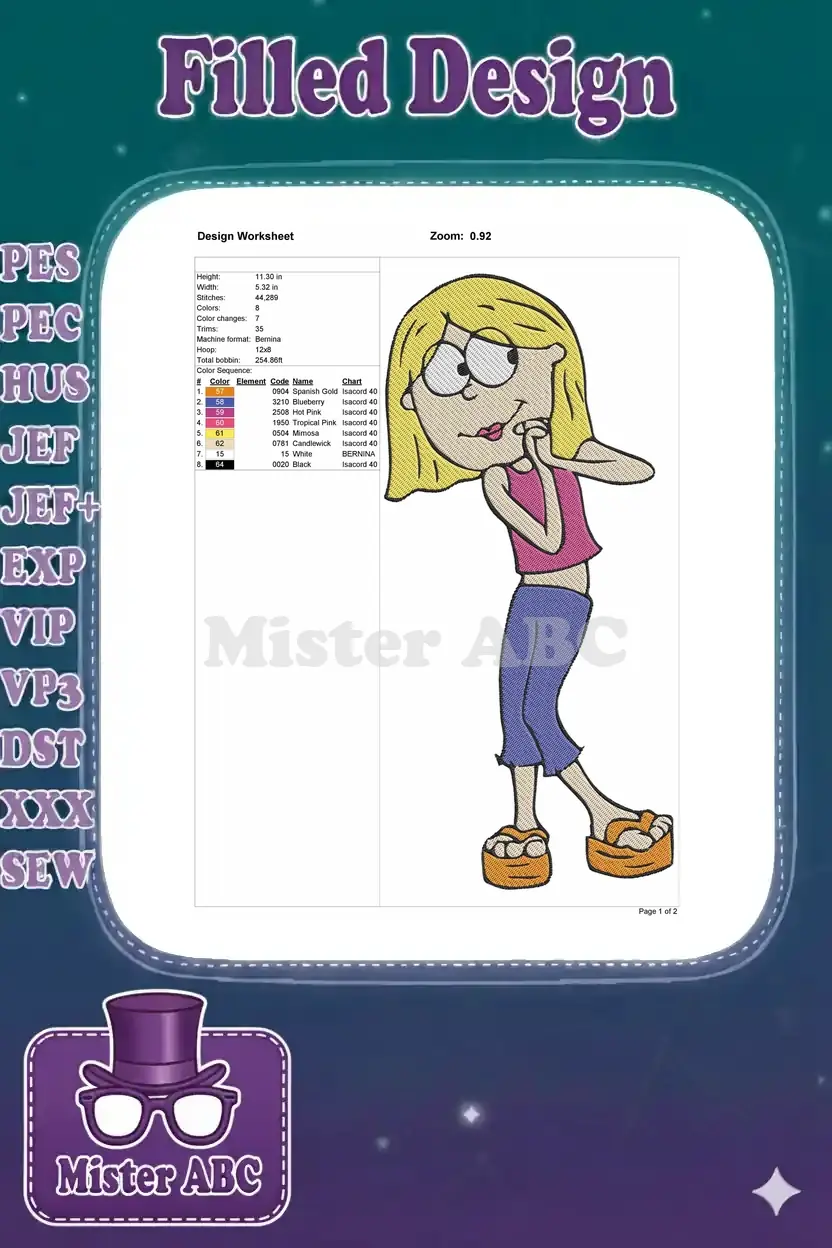 Lizzie McGuire Shy Pose Cartoon Girl Embroidery Designs