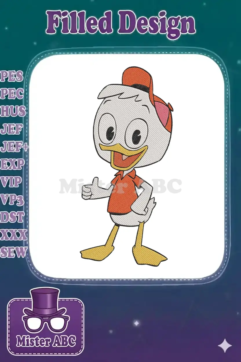 Bring cheerful Disney charm to your projects with this delightful Huey Duck embroidery design! Perfect for fans and adding a touch of classic cartoon fun.