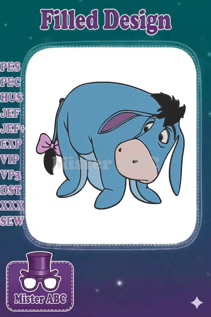 Lovable Eeyore blue donkey with pink bow embroidery designs