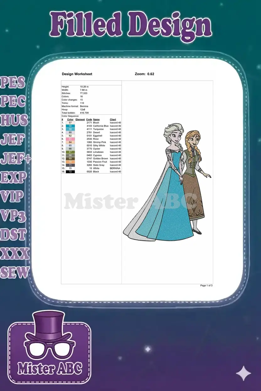 Lovely Disney Frozen Elsa and Anna sisters embroidery designs