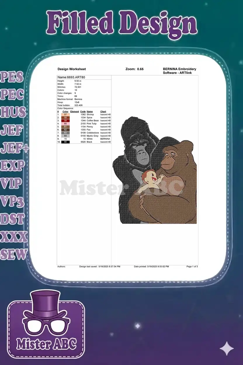 Loving Gorilla Family with Baby Tarzan Embroidery Designs