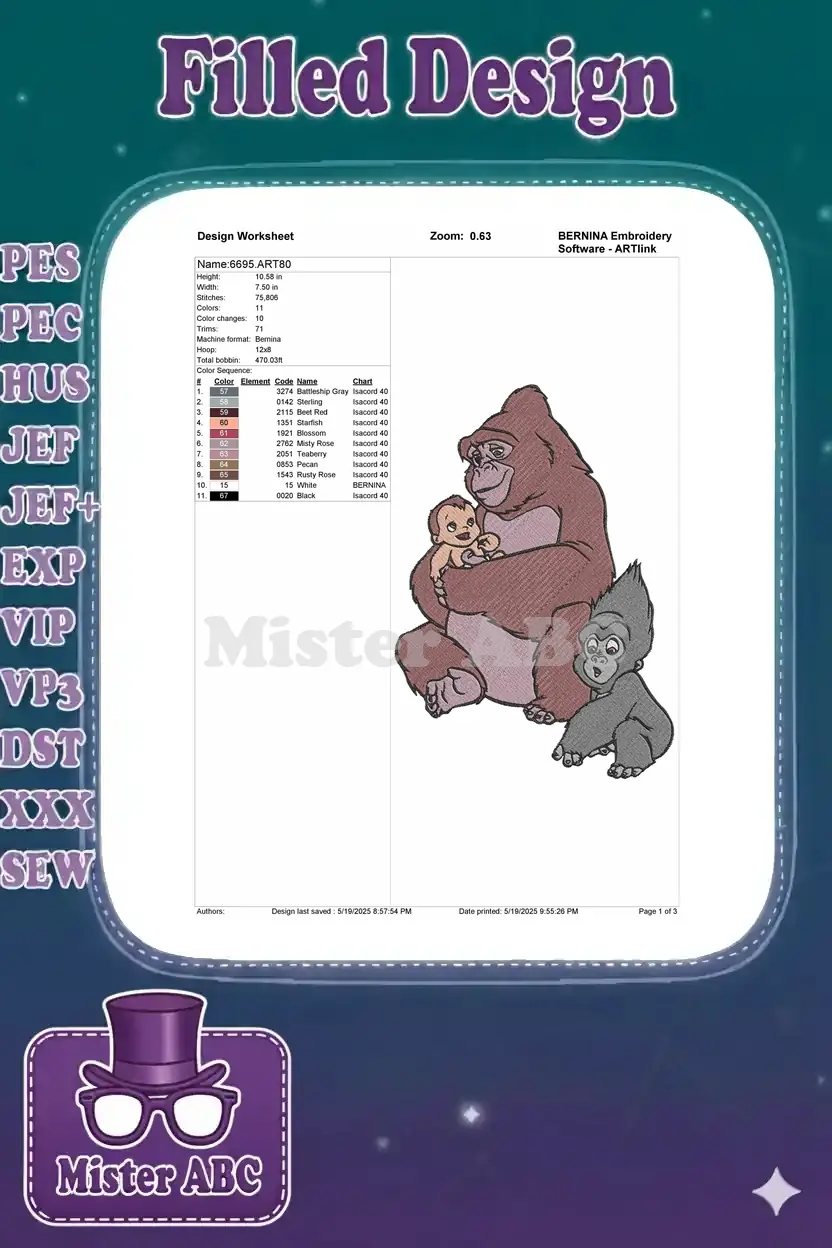 Loving Gorilla Kala Cradling Baby Tarzan Embroidery Designs