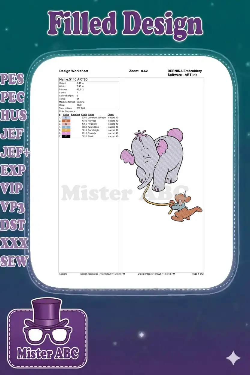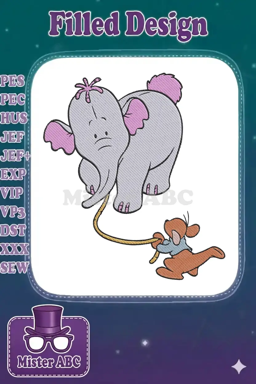 Whimsical embroidery design featuring Roo playfully pulling a Heffalump by its tail. Perfect for children’s items.