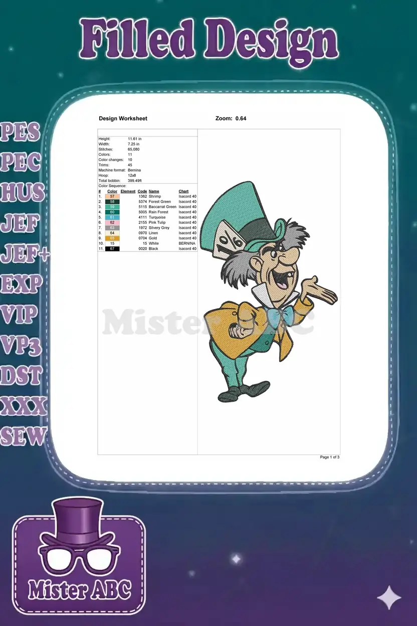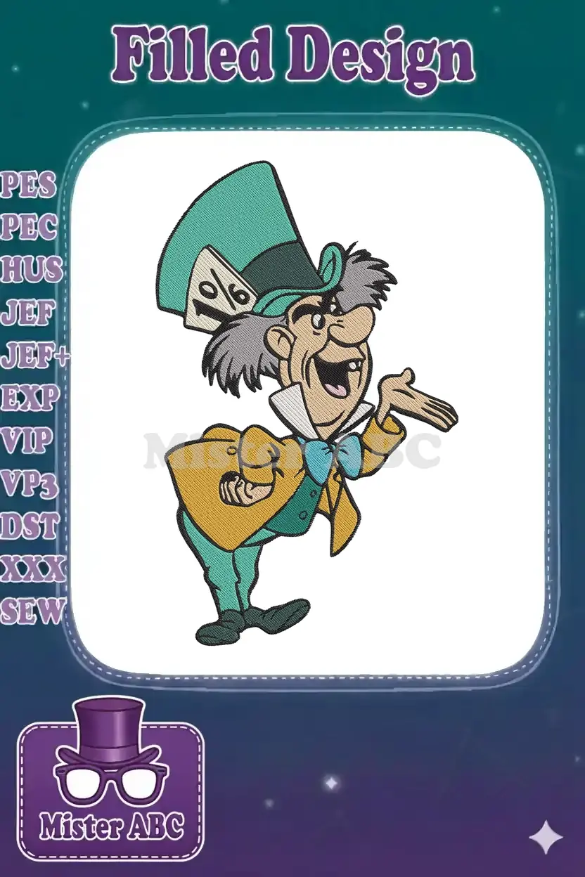 Mad Hatter Wonderland Character Whimsical Tea Party Embroidery Designs