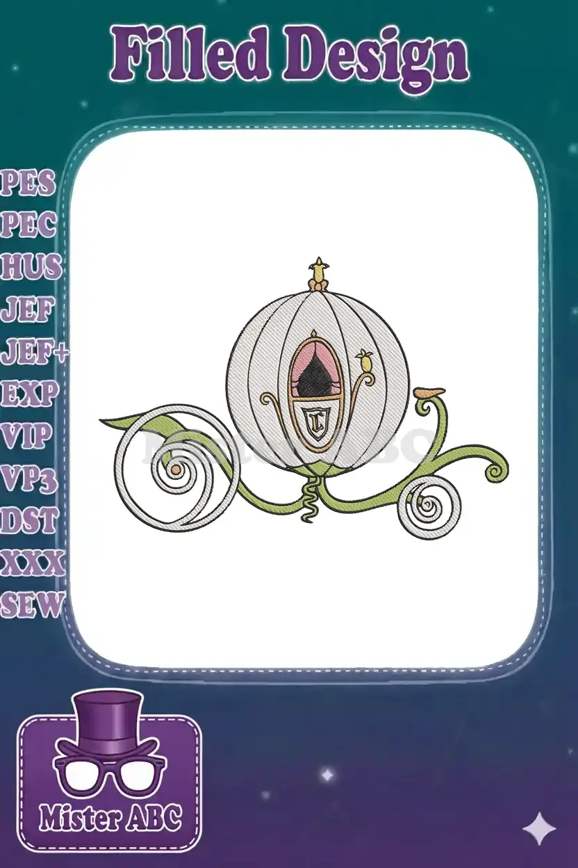 Magical Cinderella pumpkin carriage royal embroidery designs for fairy tale projects