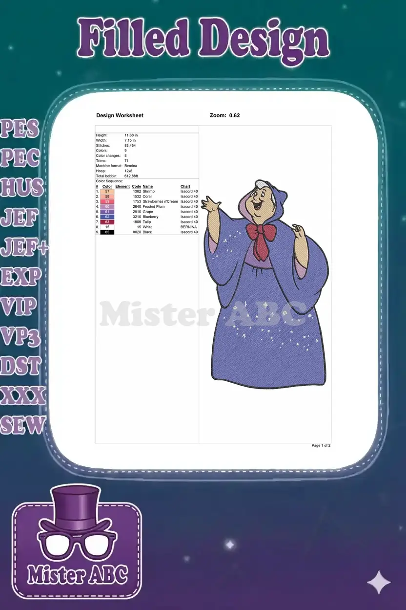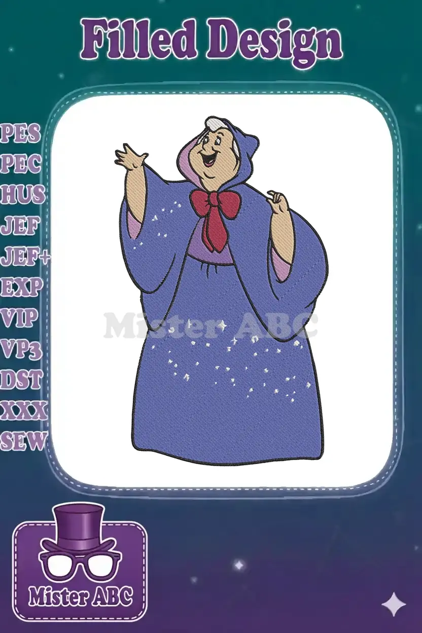 Magical Fairy Godmother Blue Cloak Sparkle Happy Embroidery Designs