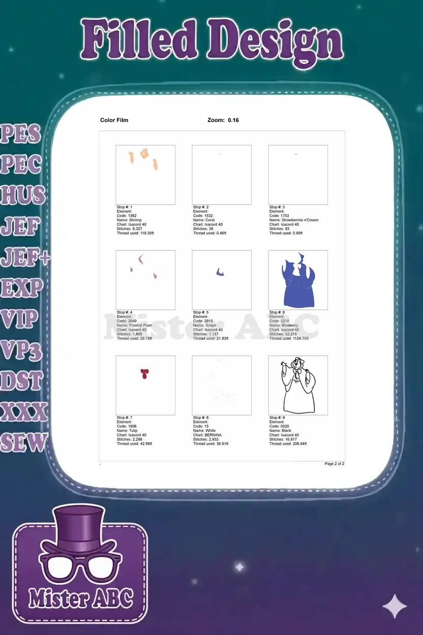 | Stitches | Colors | Thread Changes |