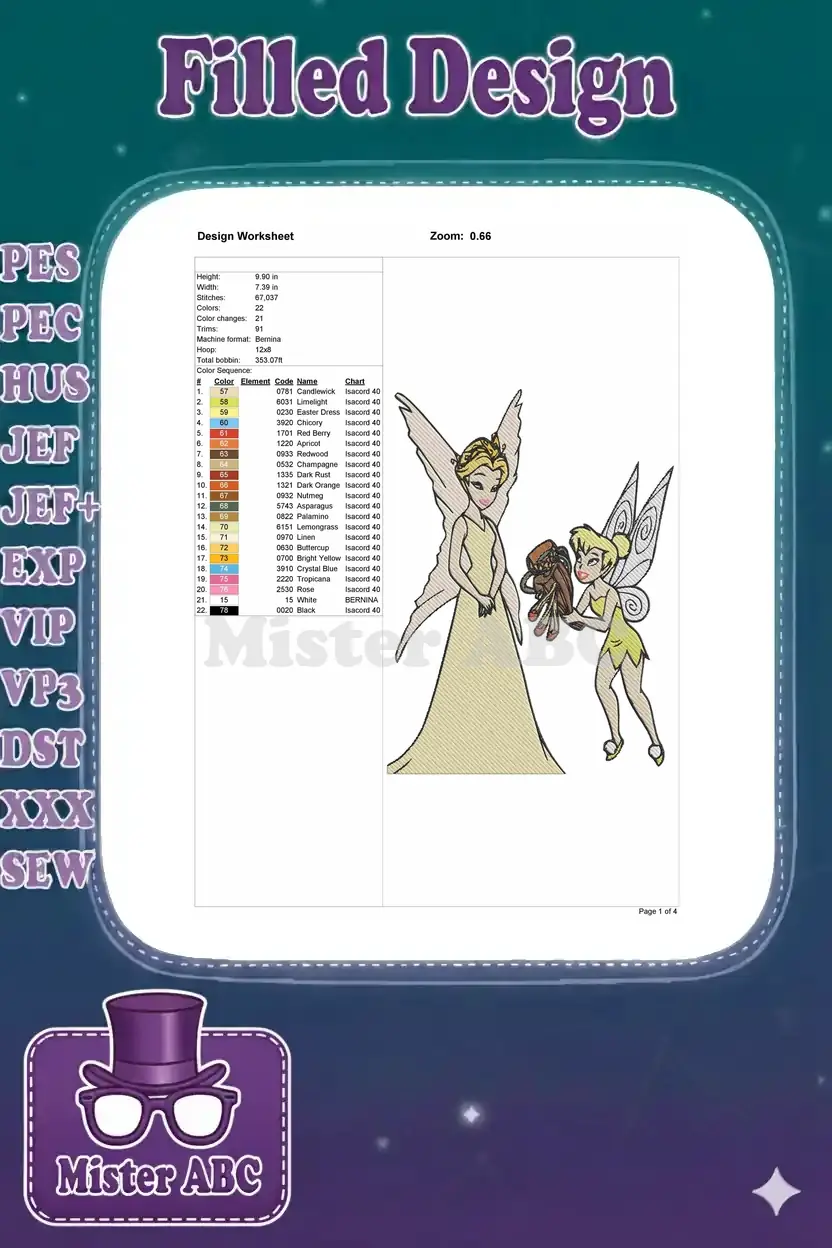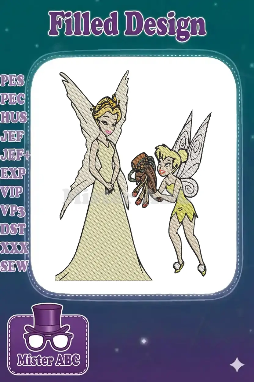 Magical fairy queen and Tinkerbell offering beetle shoes embroidery designs
