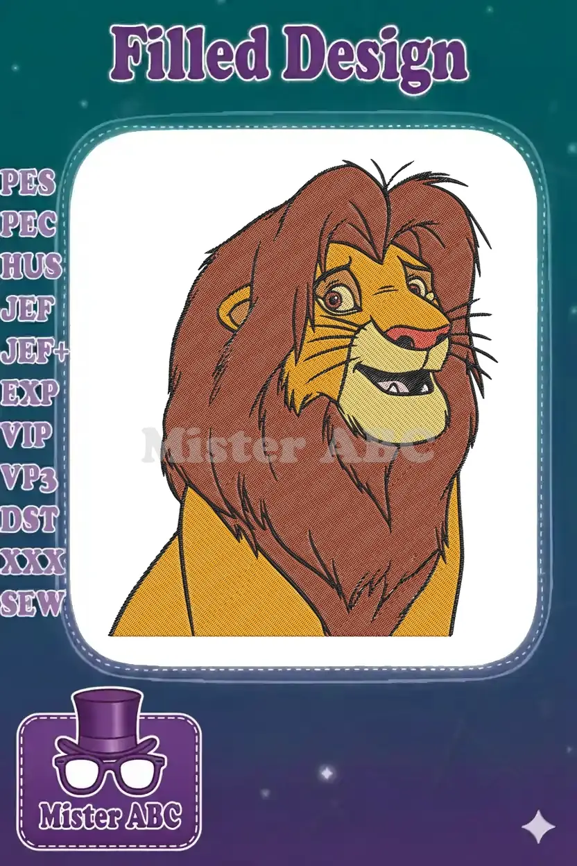 Majestic animated lion king adult Simba embroidery designs - Instant Download Majestic animated lion king adult Simba embroidery designs – Instant Download