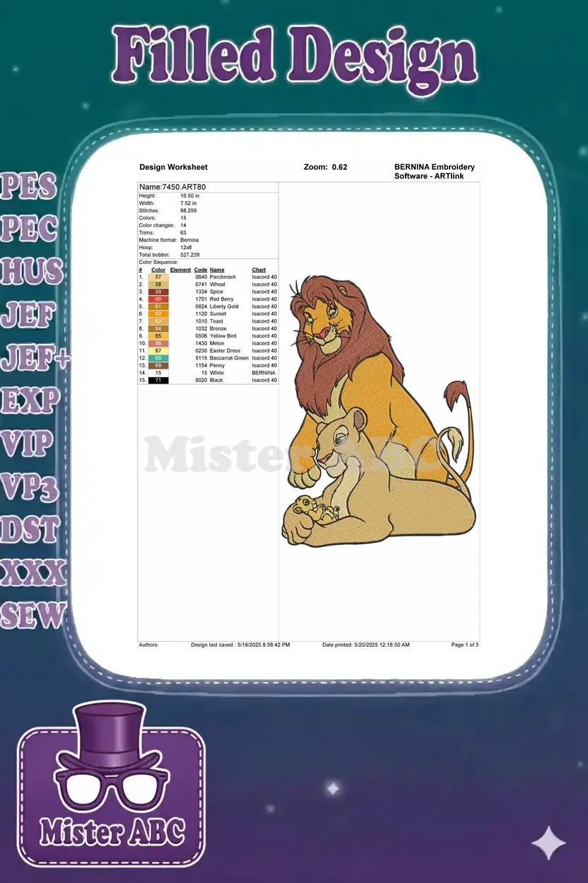 Majestic Lion Family Embroidery Designs – King, Queen, and Cub