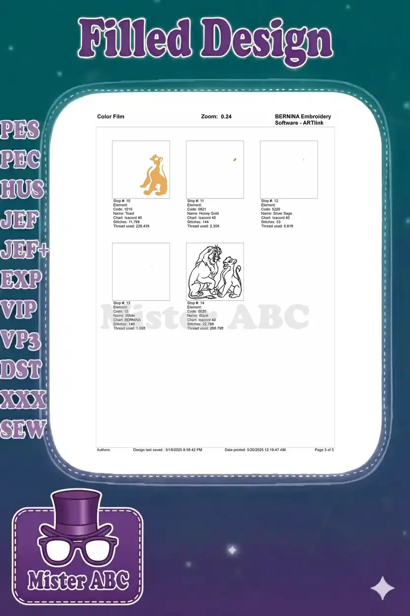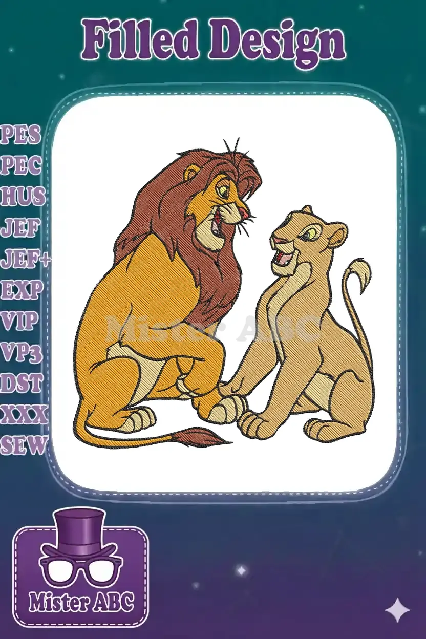 Majestic Lion King couple embroidery designs for safari animal lovers