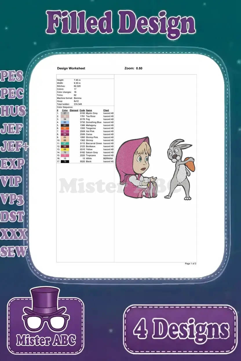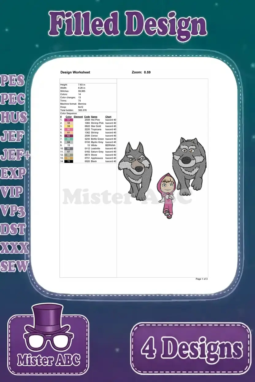 Masha And The Bear Masha With Rabbit Woodland Animals Squirrel And Wolves – Filled Embroidery Design