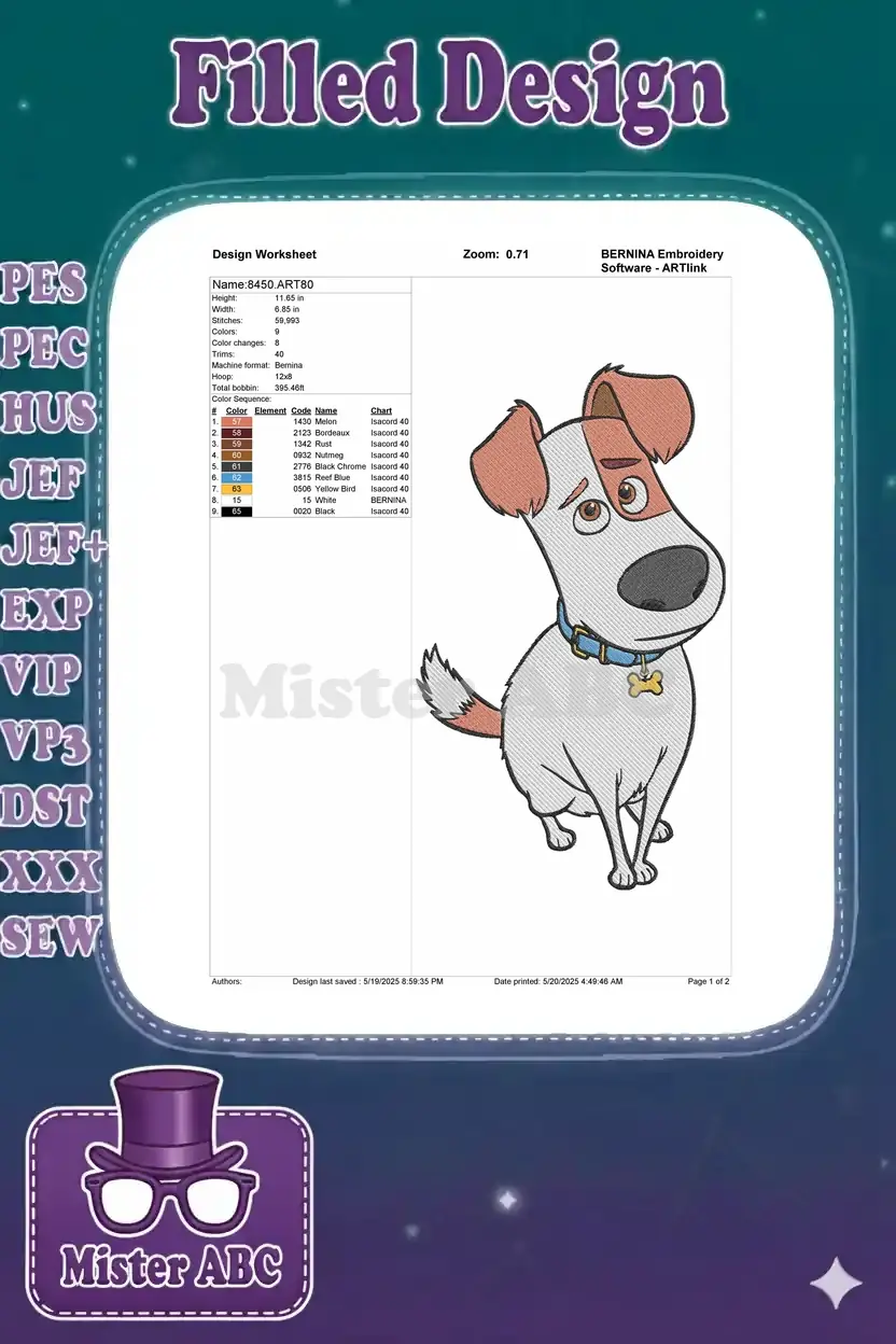 Max Secret Life Pets dog cartoon embroidery designs