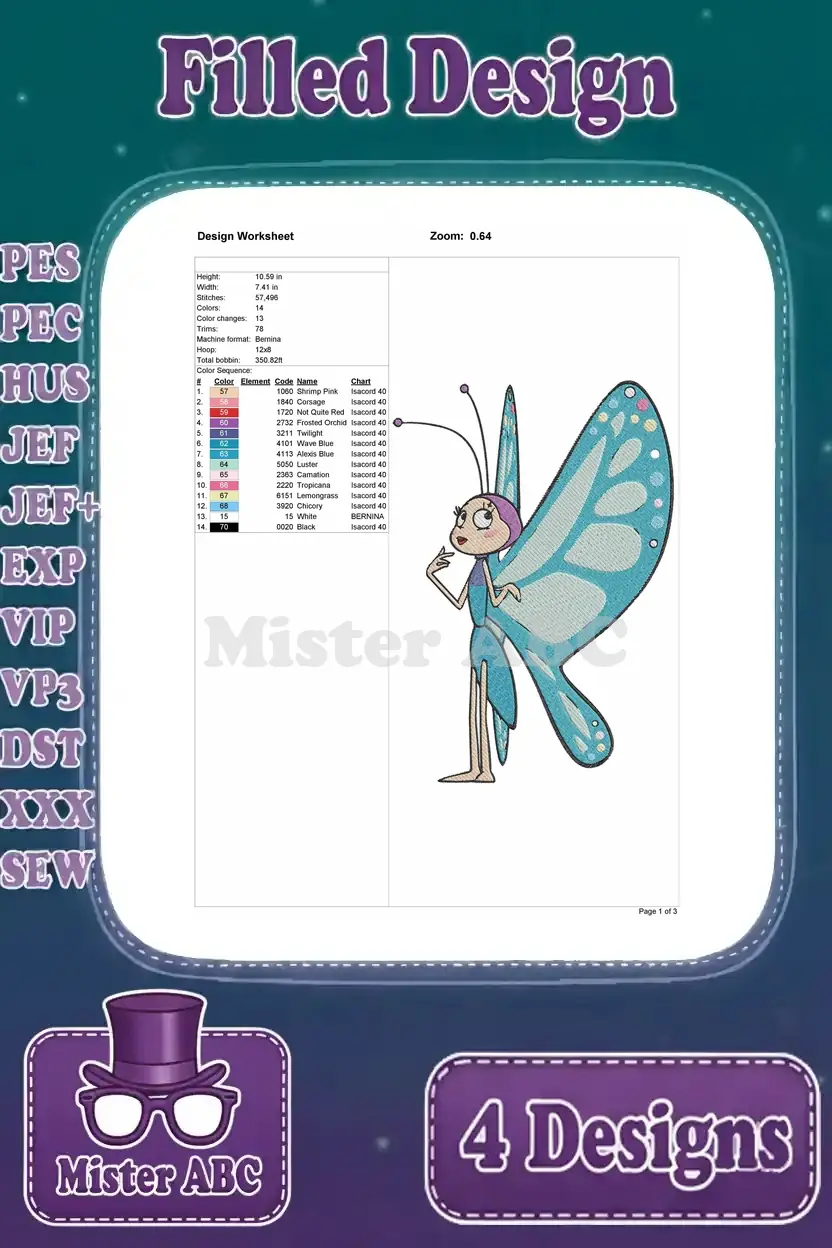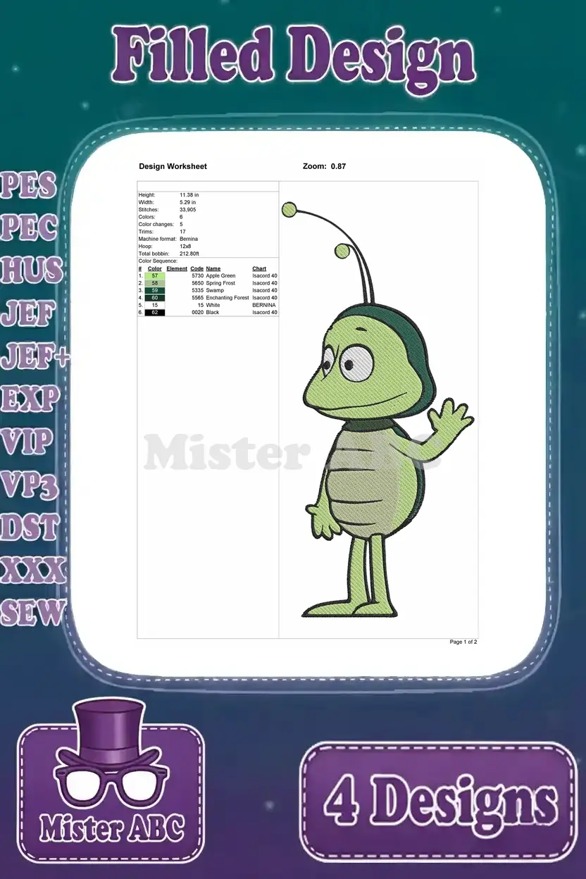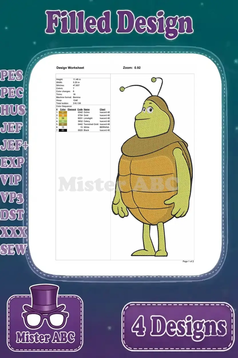Maya The Bee And Friends Butterfly Grasshopper And Beetle Insect Characters – Filled Embroidery Design