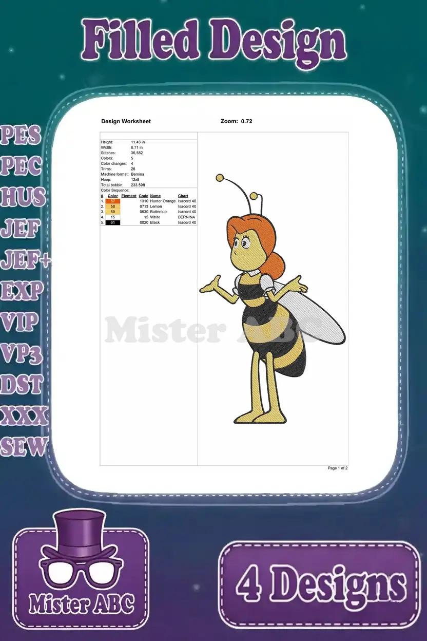 Maya The Bee And Friends - Willy The Bee - Barry The Fly - Shelby The Snail - Insect Adventures - Filled Embroidery Design - 3884