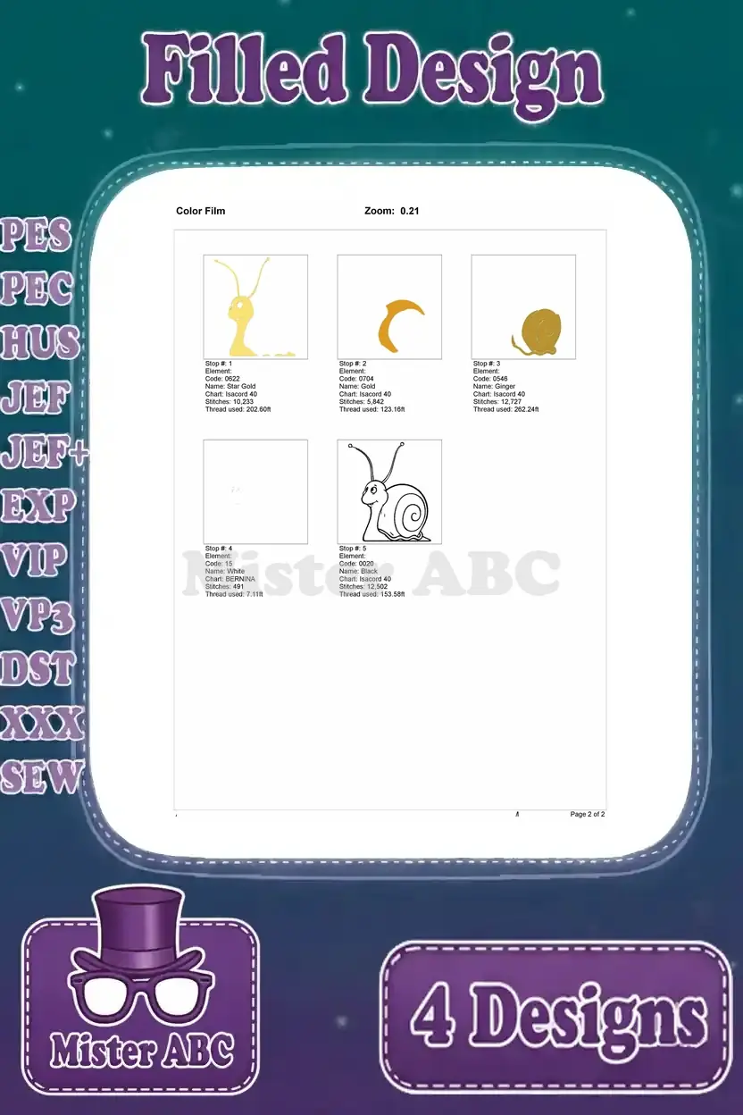 Delightful bundle of 4 filled embroidery designs featuring beloved animated characters and a charming snail! Perfect for adding a playful touch to any project.