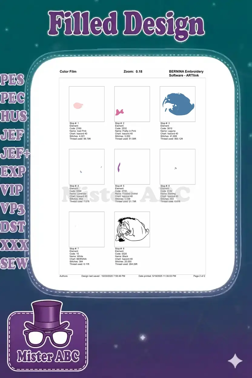 Melancholy Eeyore Blue Donkey Winnie Pooh Character Embroidery Designs