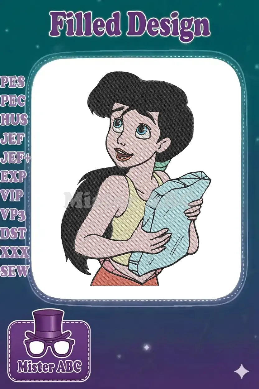 Melody Holding Blue Crystal Treasure Embroidery Designs