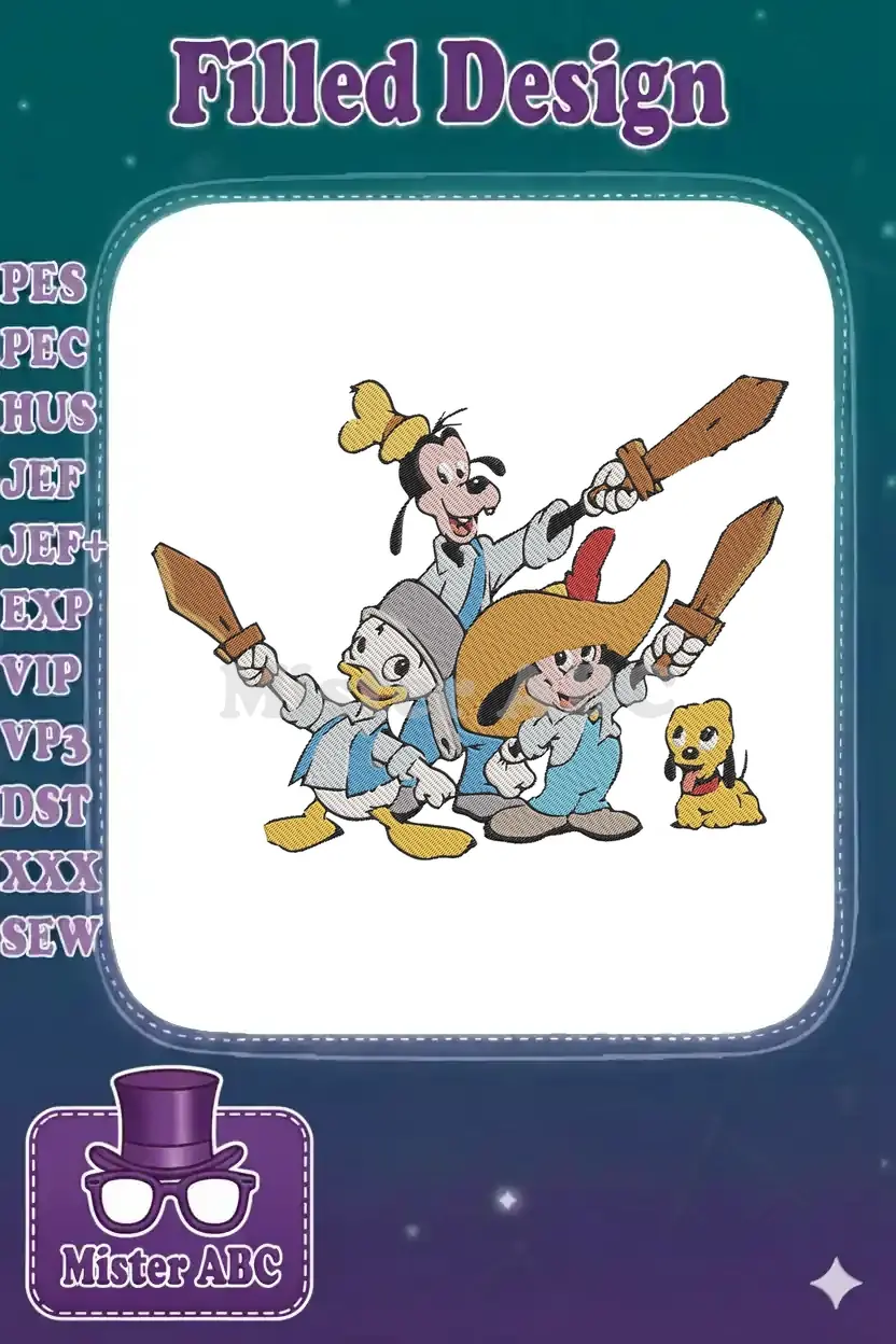 Mickey Goofy Donald Pluto swordplay adventure embroidery designs – Instant Download