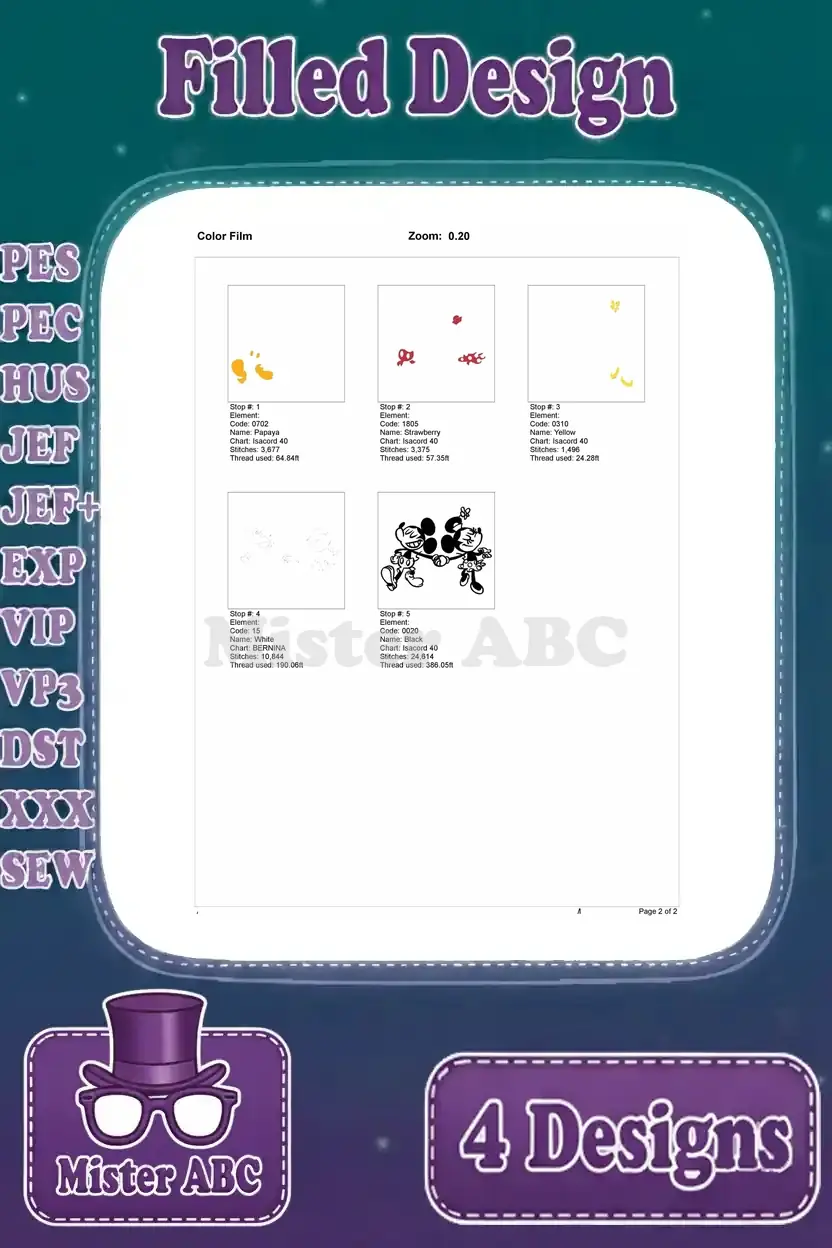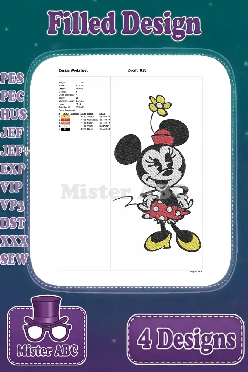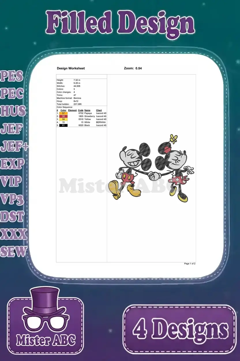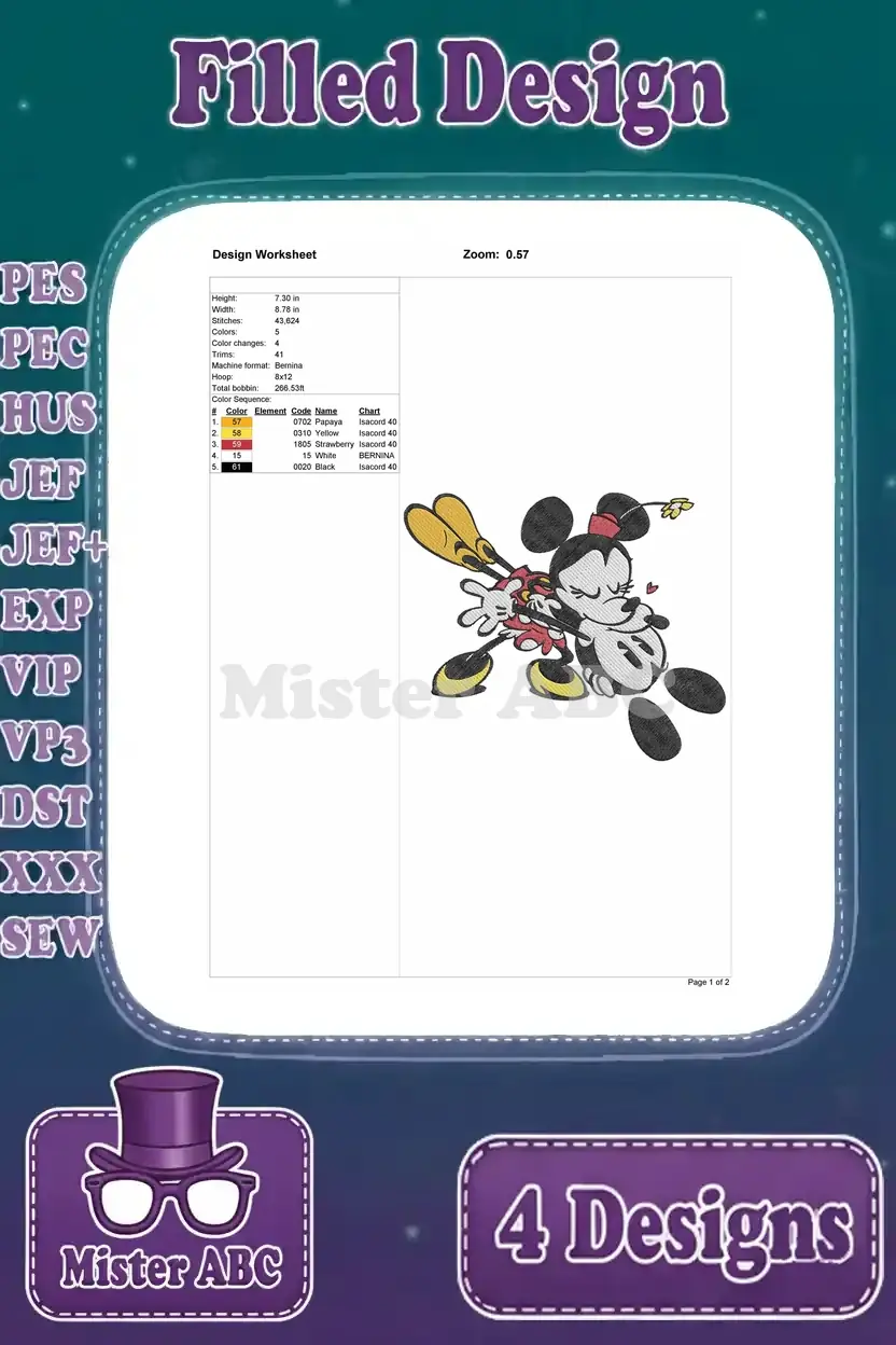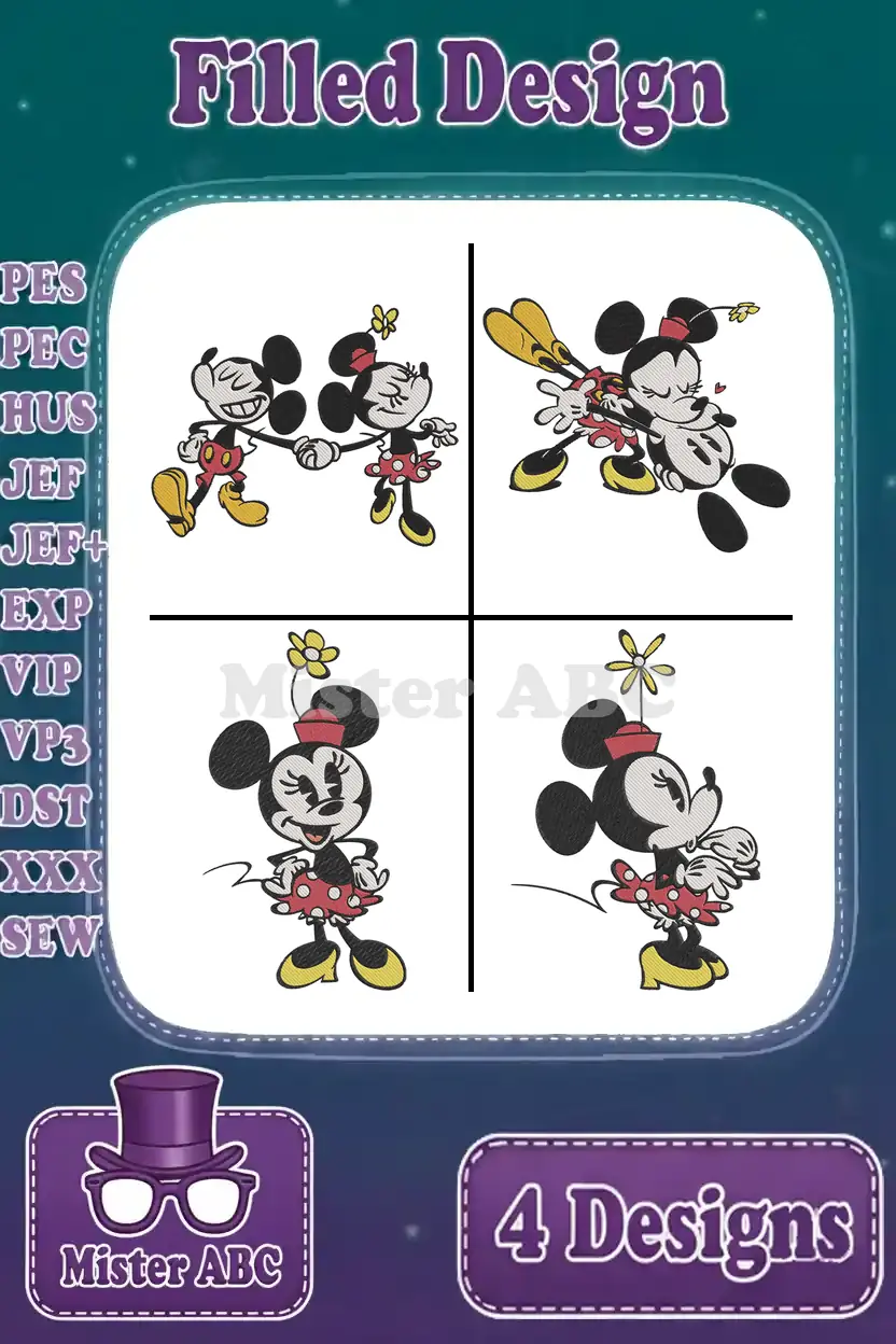 Mickey And Minnie Mouse – Mickey Rowing Boat And Minnie With Flowers – Romantic Outing Design – Filled Embroidery Design