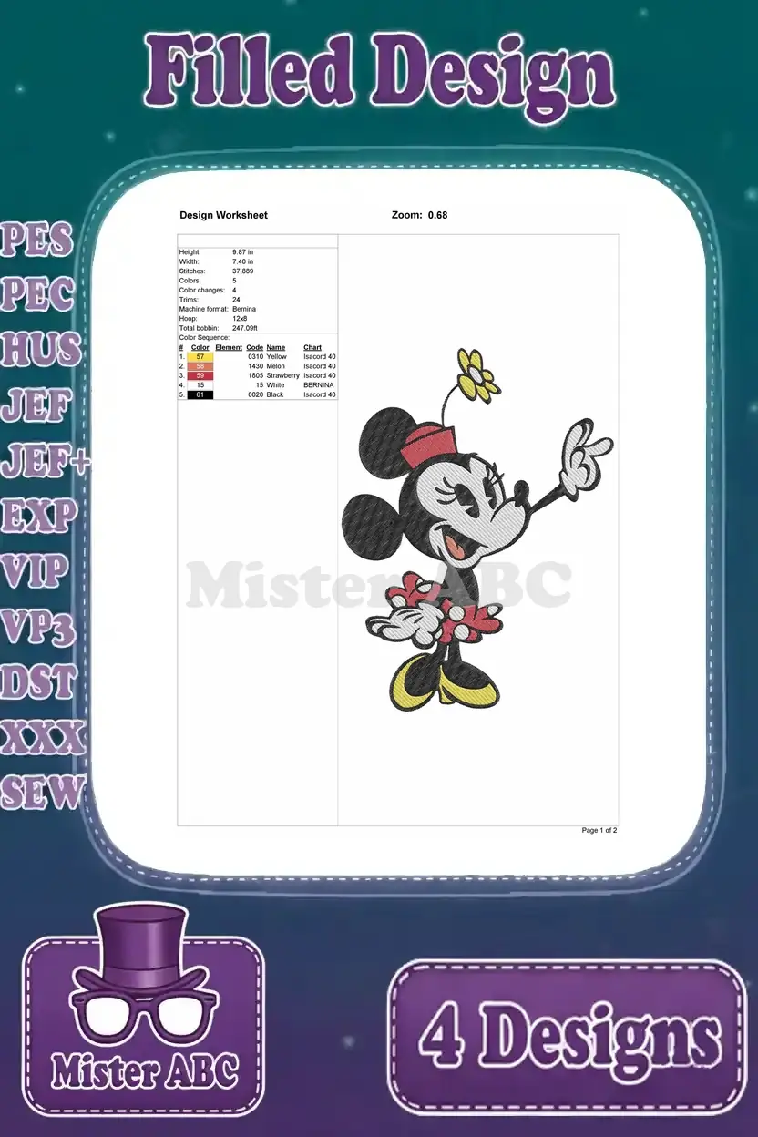 Mickey And Minnie Mouse – Minnie Shopping And Mickey Pointing – Classic Disney Couple Fun – Filled Embroidery Design