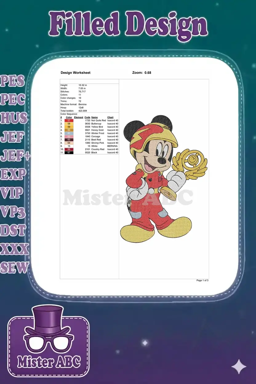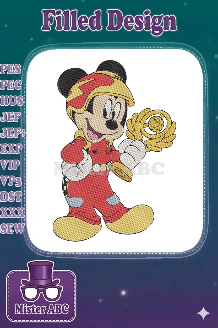 Celebrate victory with this vibrant Mickey Mouse racing embroidery design, perfect for fans and Disney enthusiasts!