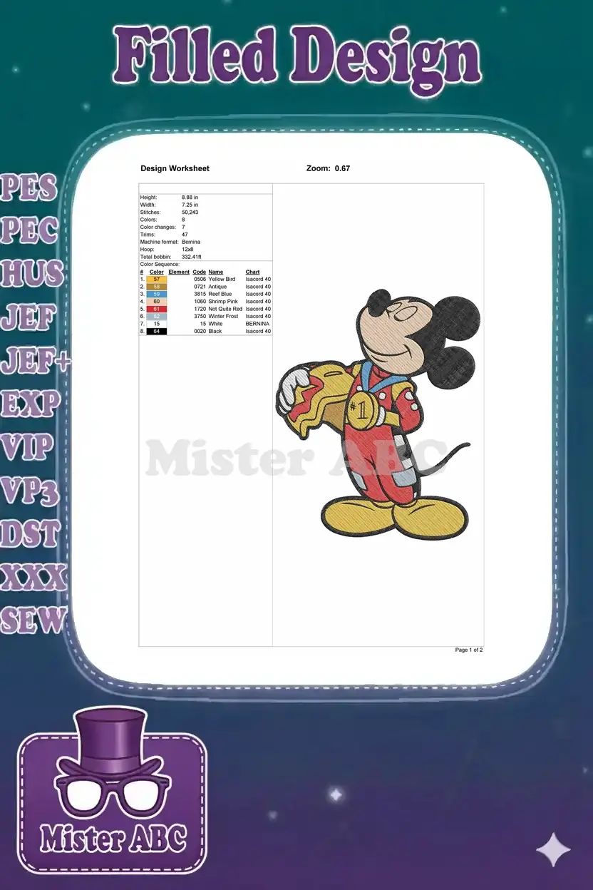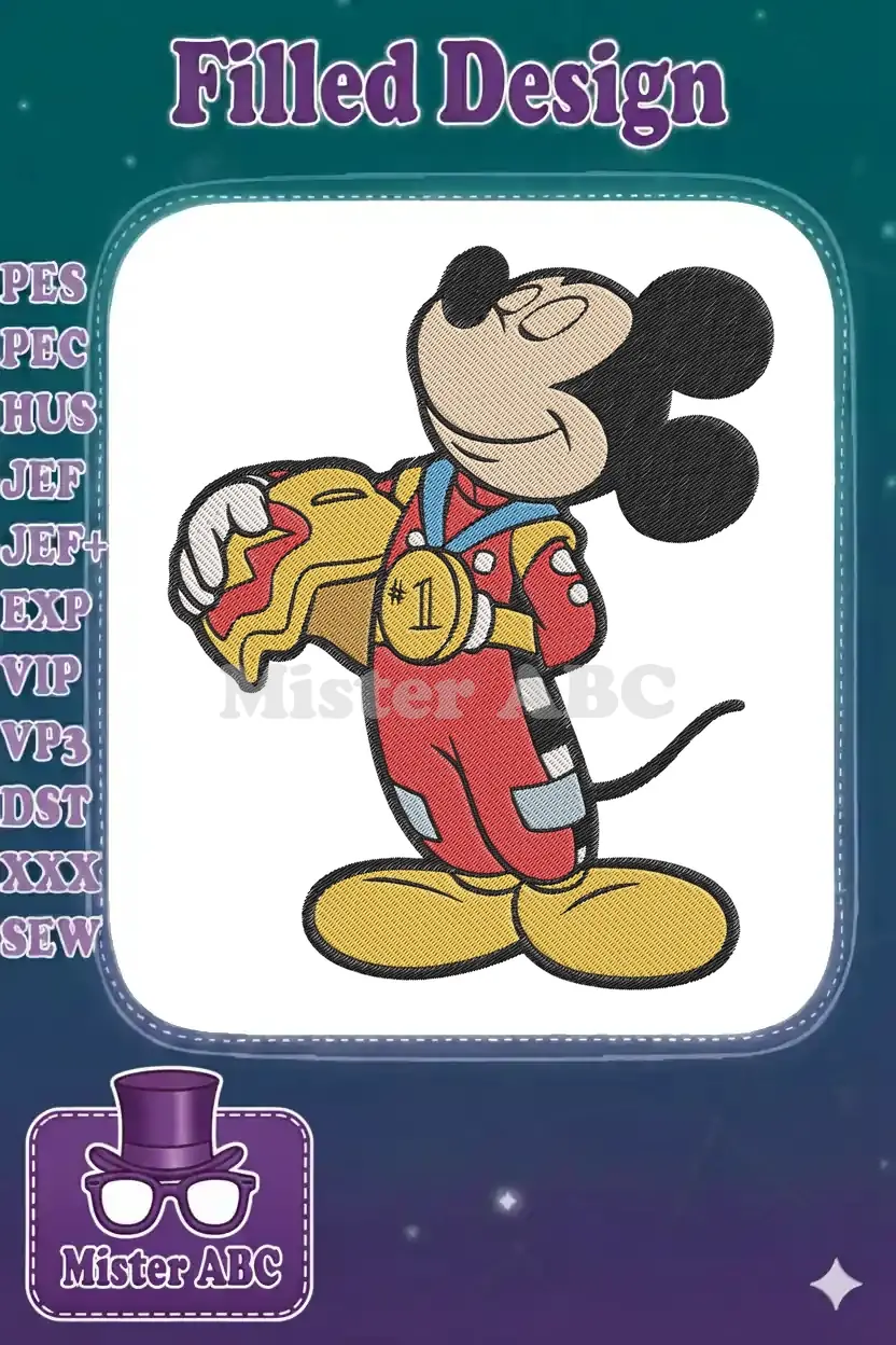 Mickey Mouse Racing Champion with Helmet and #1 Medal Embroidery Designs