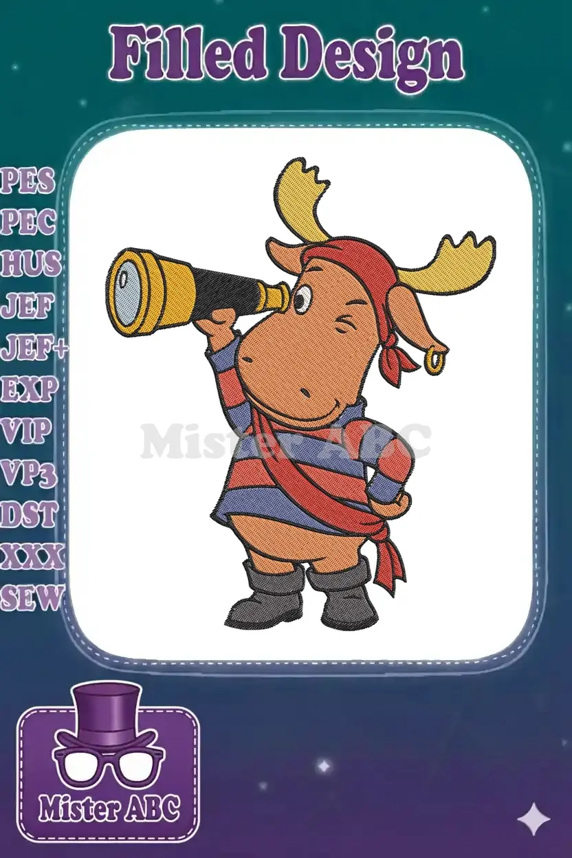 Mighty Pirate Moose with Spyglass Embroidery Designs for Adventurous Seafarers