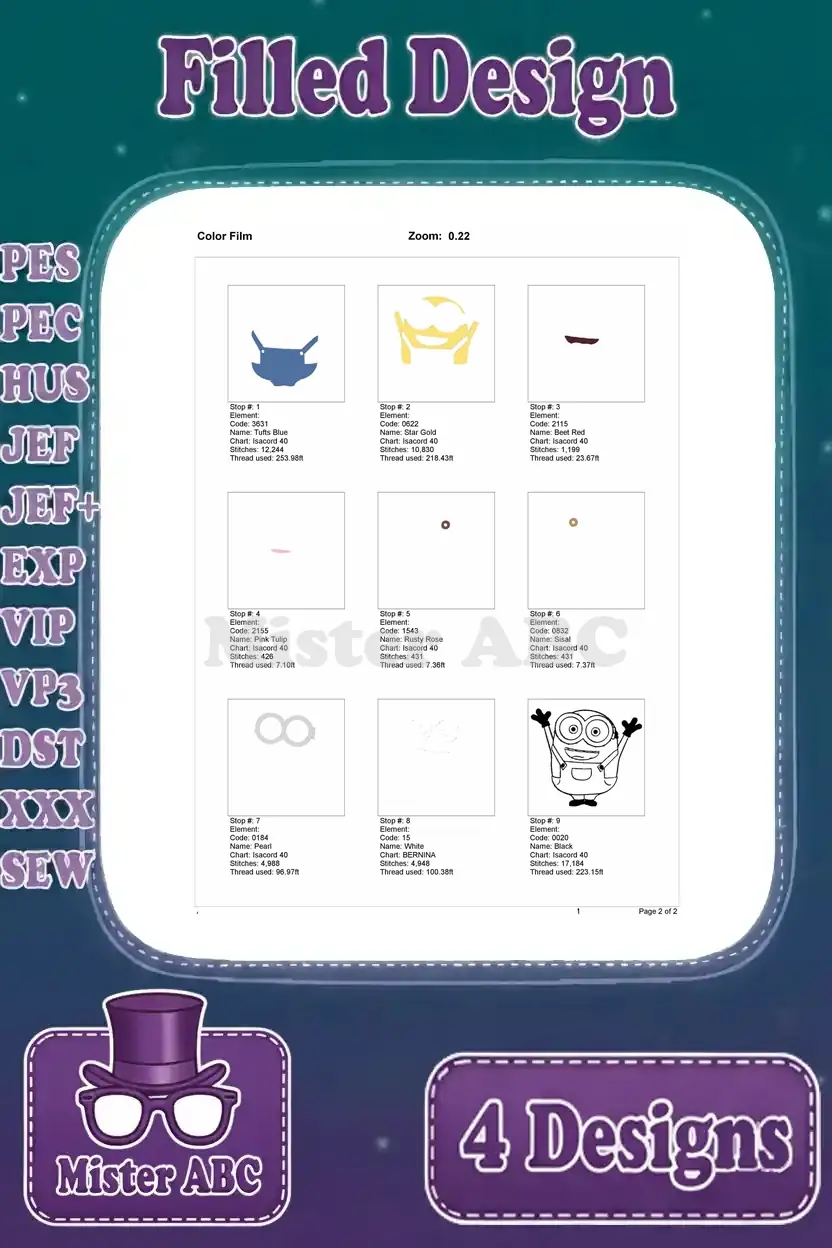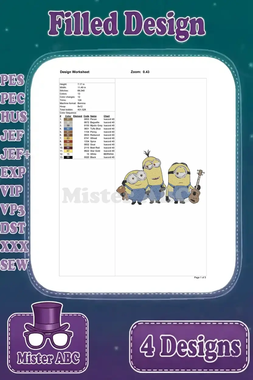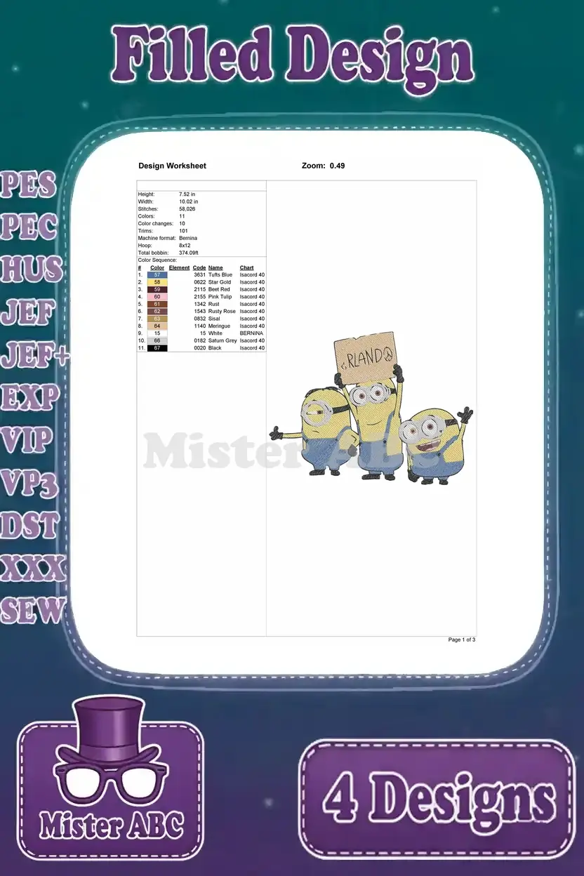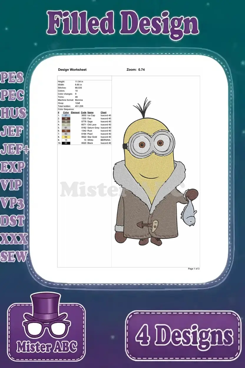 Minions Despicable Me – Kevin Stu Bob – Winter Minion – Orlando Sign Group – Yellow Henchmen – Filled Embroidery Design