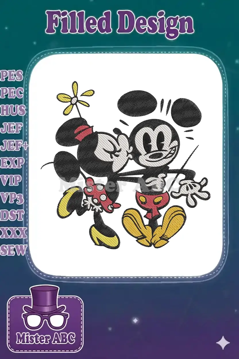 Minnie Mouse kissing Mickey Mouse classic Disney embroidery designs