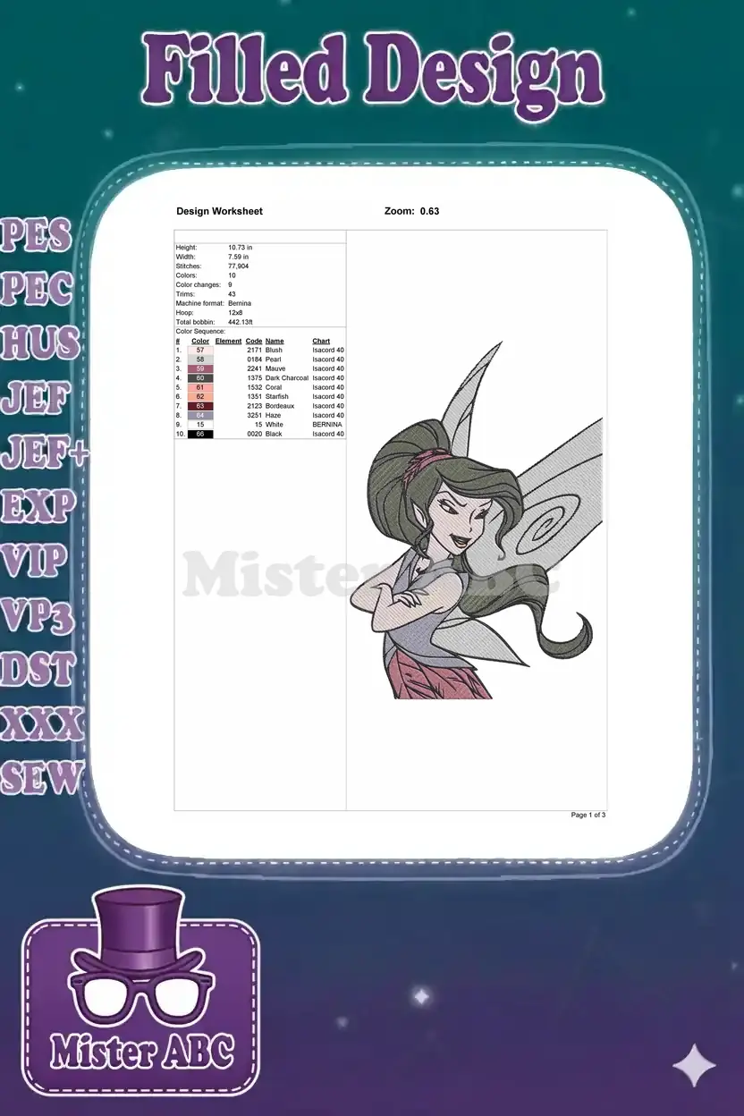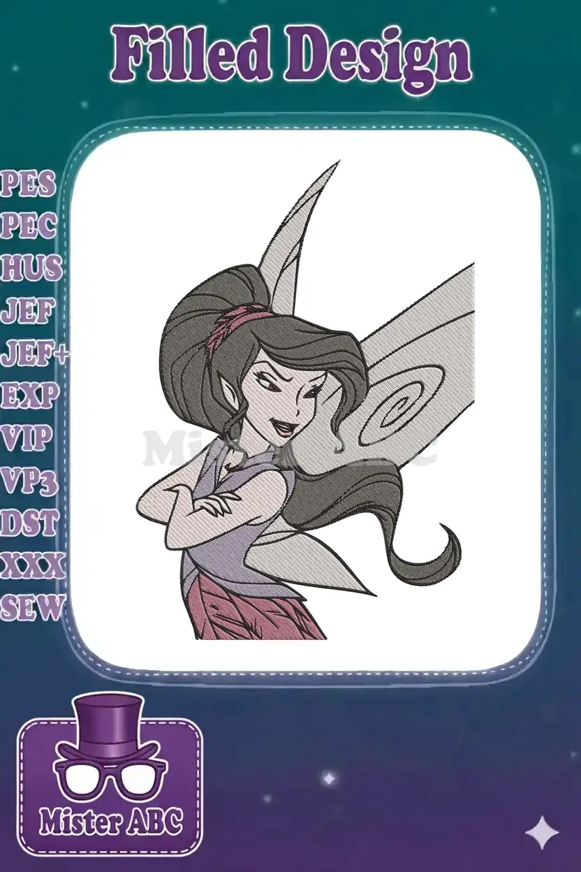 Mischievous Dark-Haired Fairy with Pointy Ears Embroidery Designs