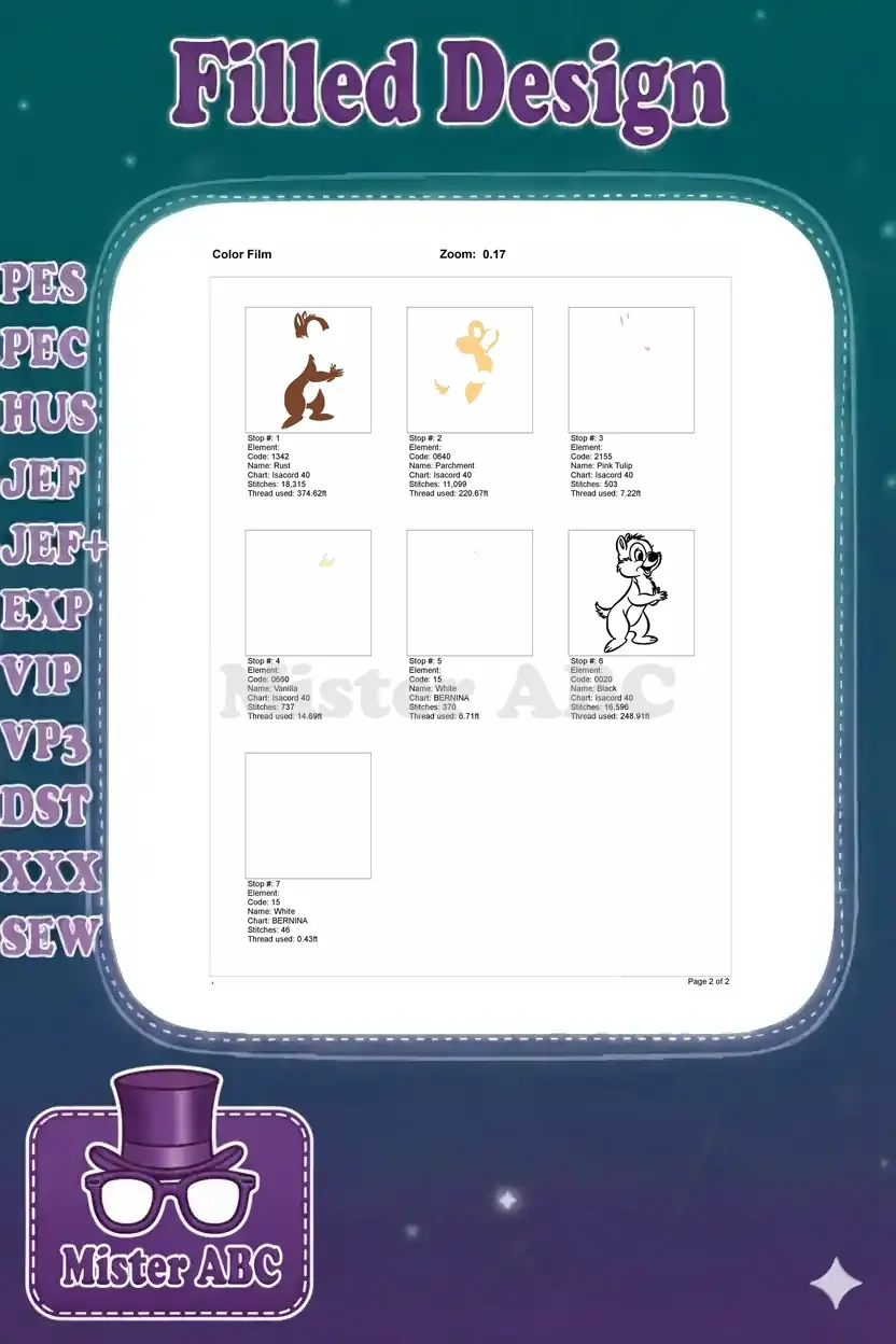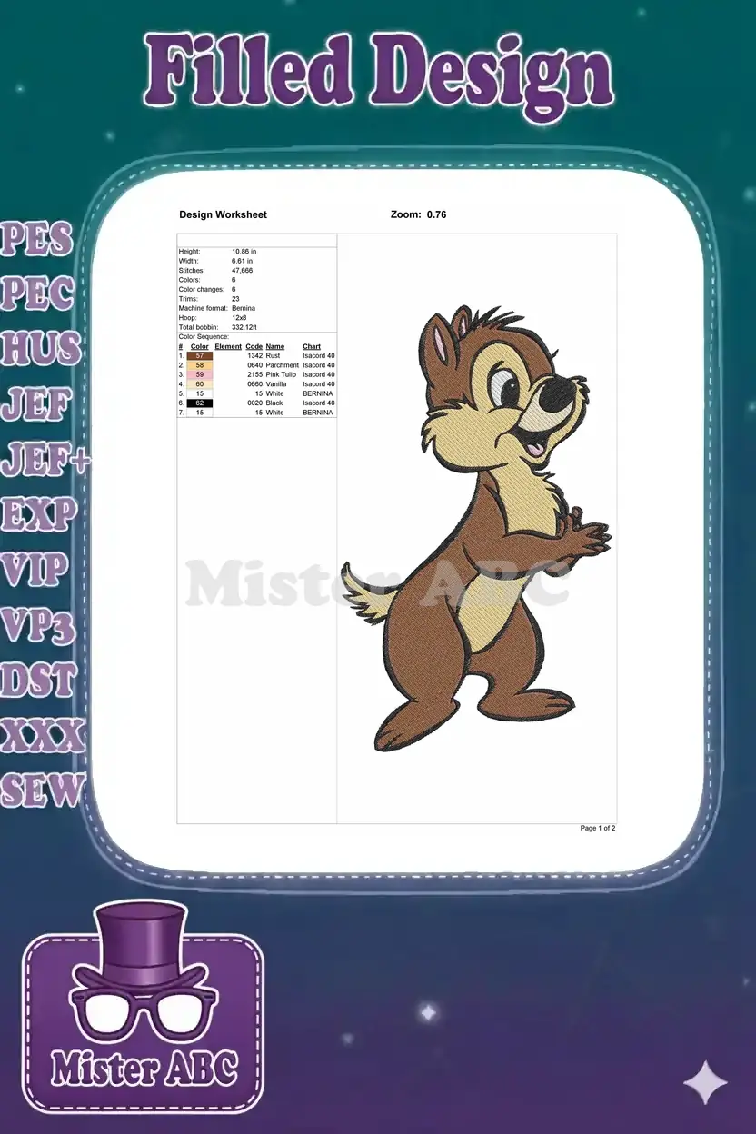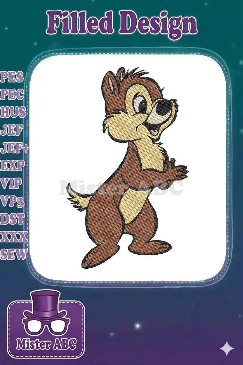 Mischievous Disney Dale Chipmunk Character Embroidery Designs