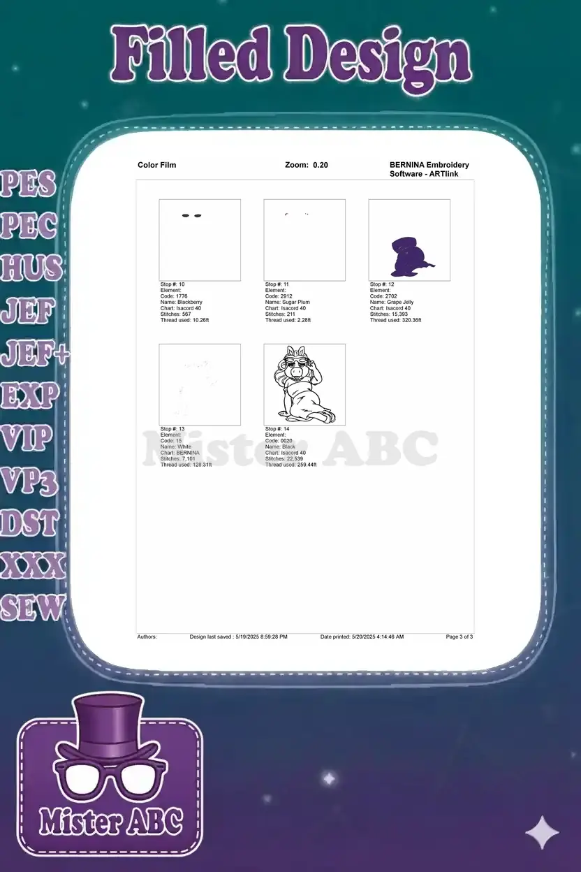 Miss Piggy glamorous purple dress sunglasses embroidery designs