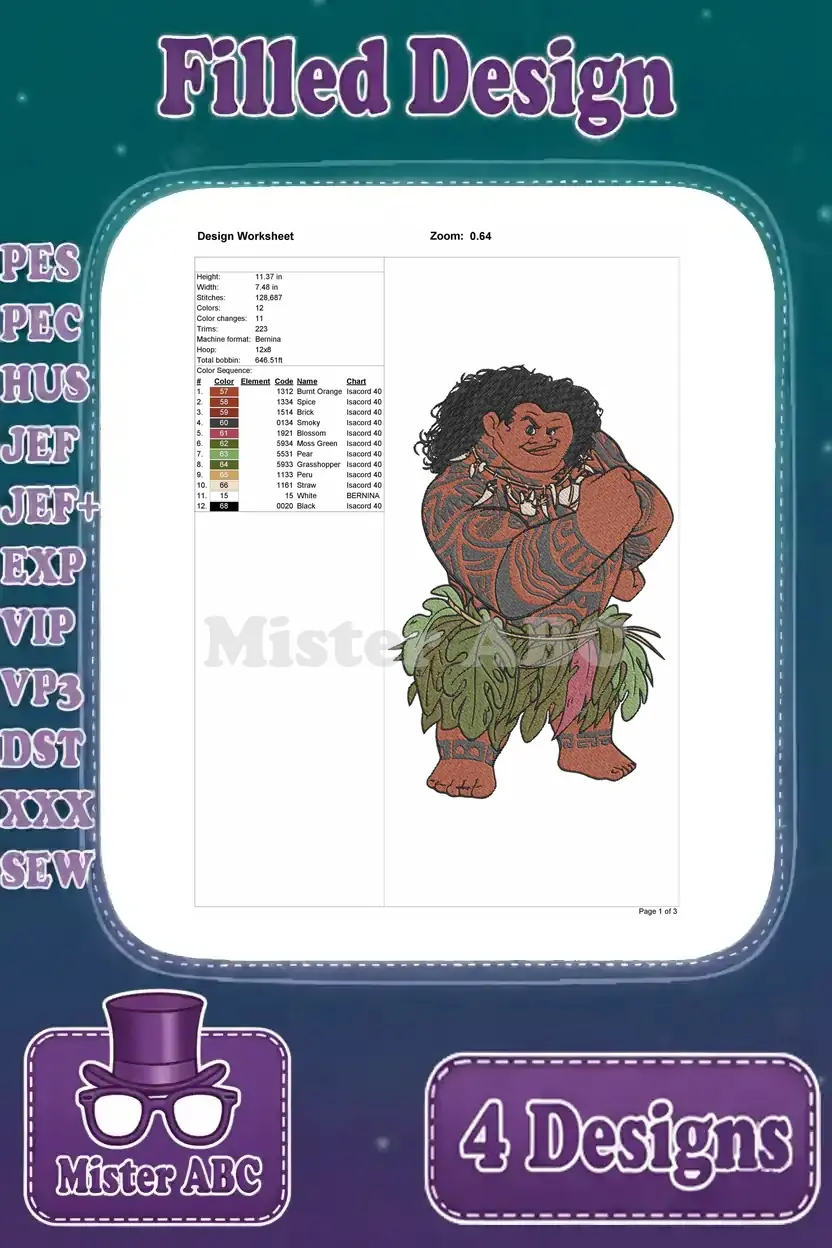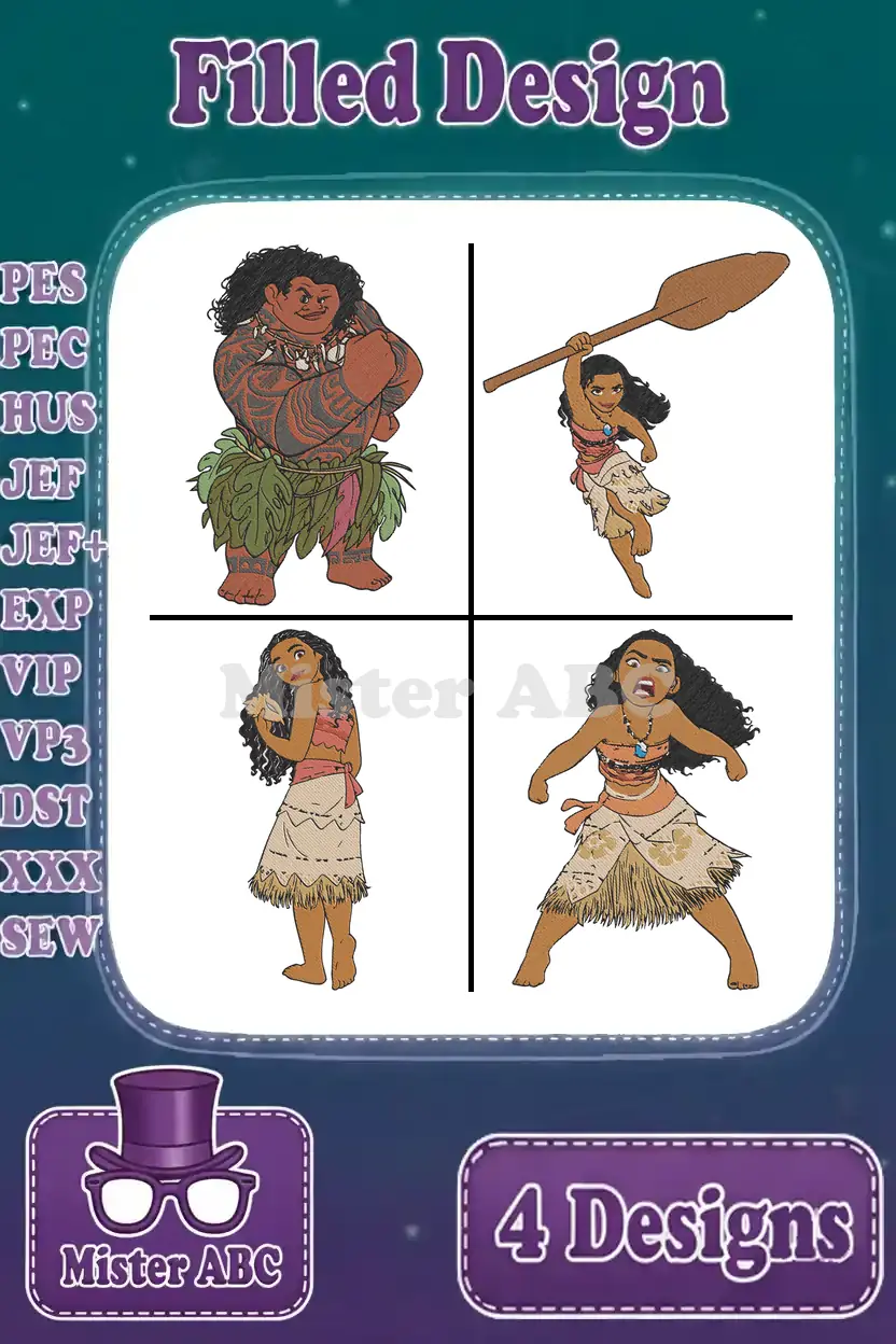 Dive into adventure with this delightful Moana and Maui embroidery bundle! Four vibrant filled designs capture beloved characters.