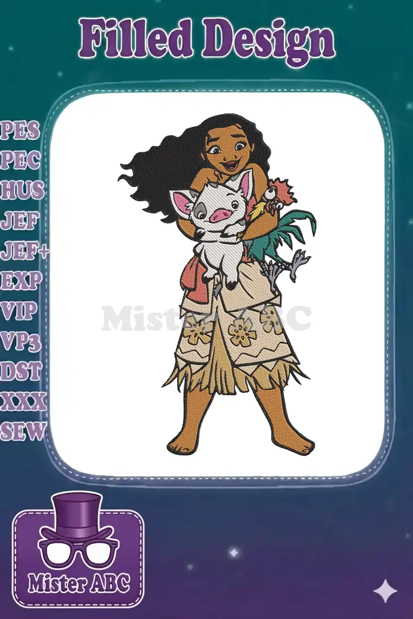 Moana Pua Heihei Disney Princess Tropical Island embroidery designs