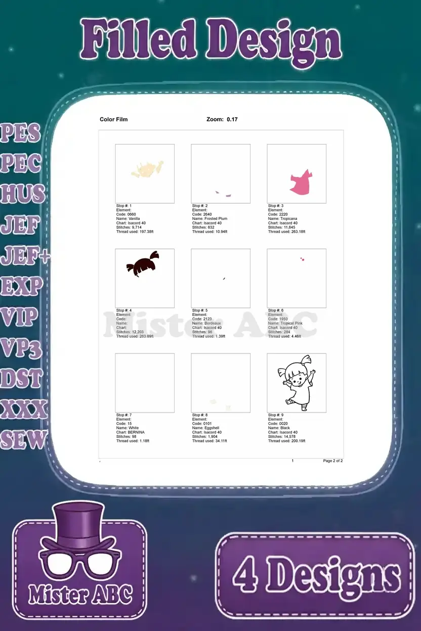 Monsters Inc - Boo Mary Gibbs Human Child - Cute And Playful Poses - Pixar Character Collection - Filled Embroidery Design - Instant Download Monsters Inc – Boo Mary Gibbs Human Child – Cute And Playful Poses – Pixar Character Collection – Filled Embroidery Design – Instant Download